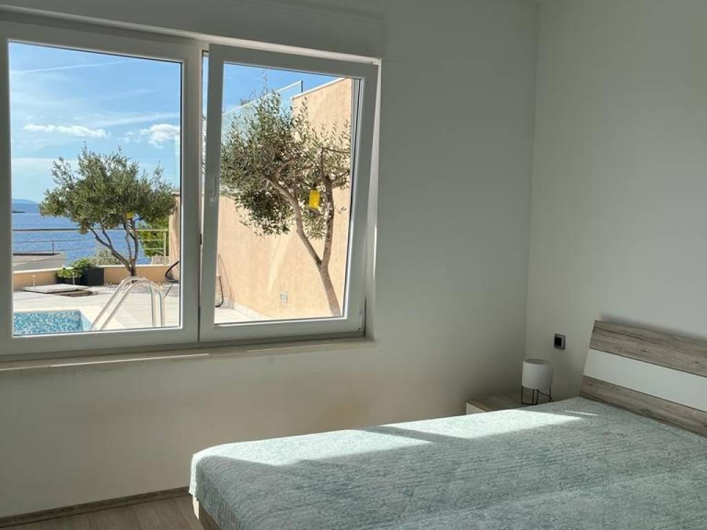 Key Features: Location: Just 50 meters from the sea and stunning beaches View: Panoramic, permanently unobstructed sea view Total usable area: 141 m Terrace area: 135 m Land area: 276 m Tranquil and exclusive setting, perfect for relaxation Property Layout: The ground floor features a spacious living room with a modern, fully equipped kitchen and dining area, opening onto a large terrace with a pool and a spectacular sea view.
