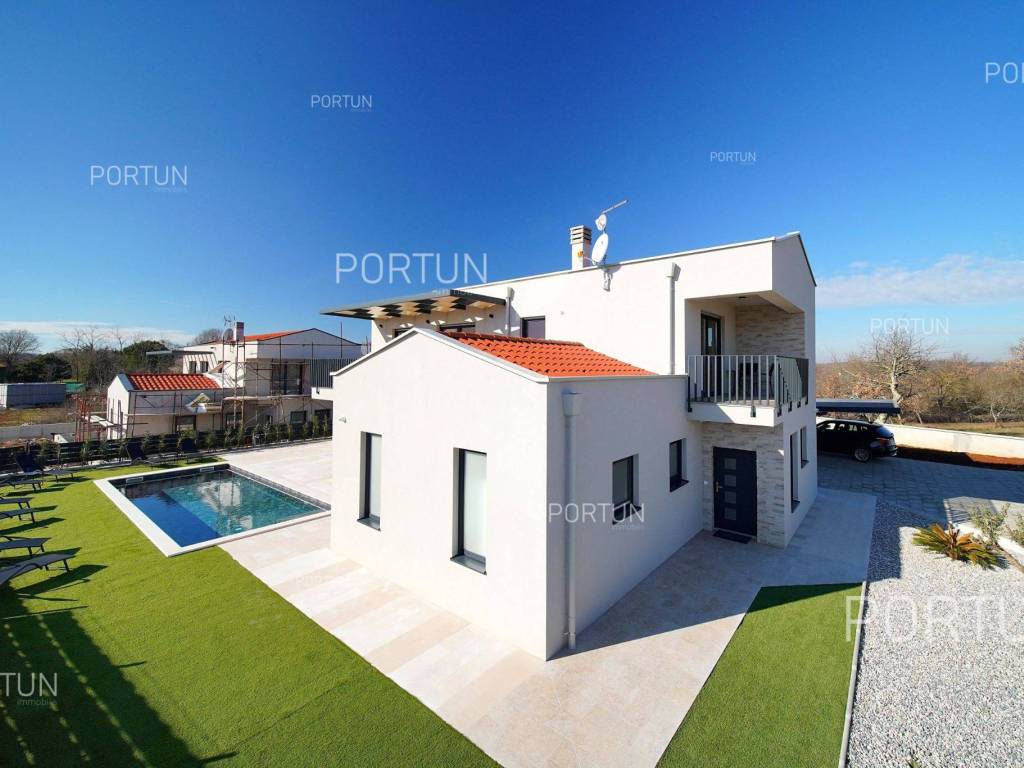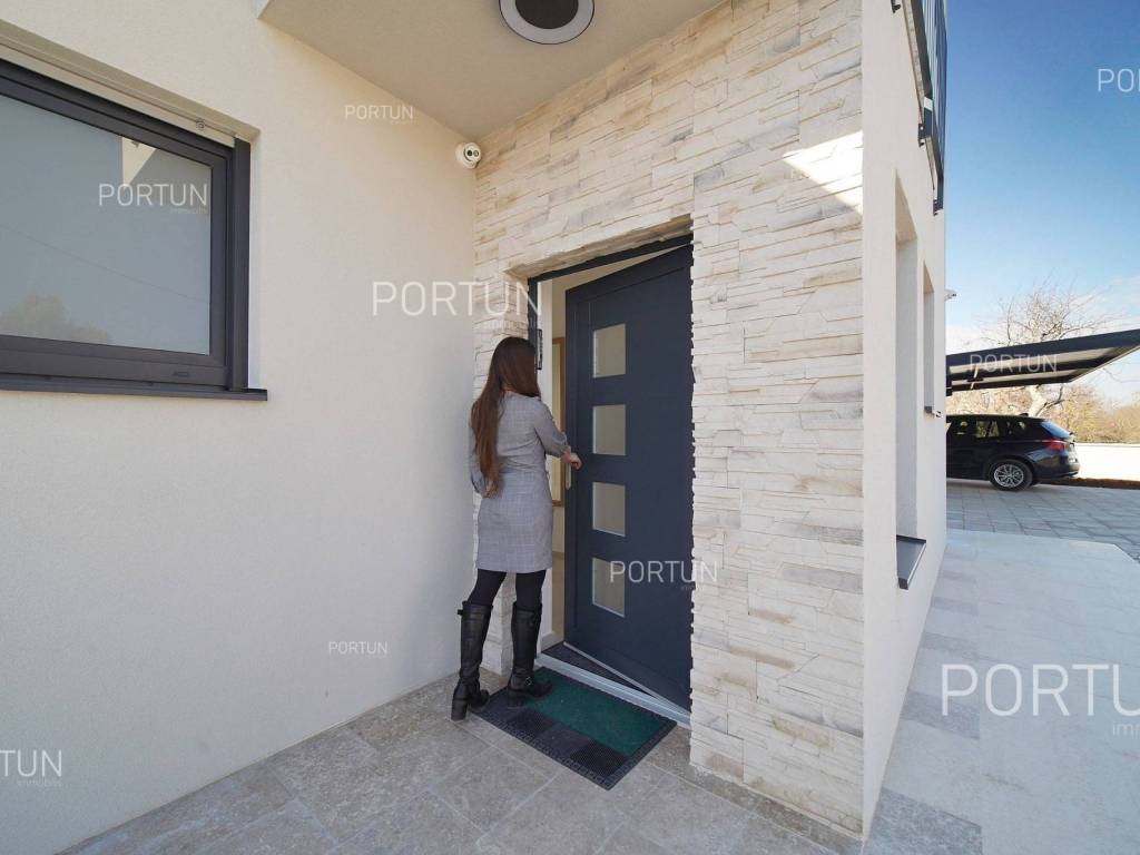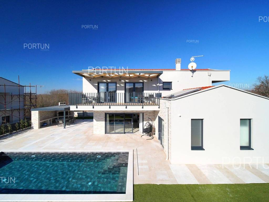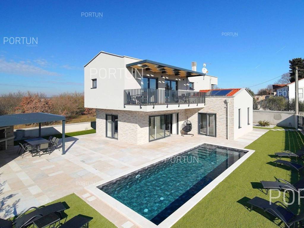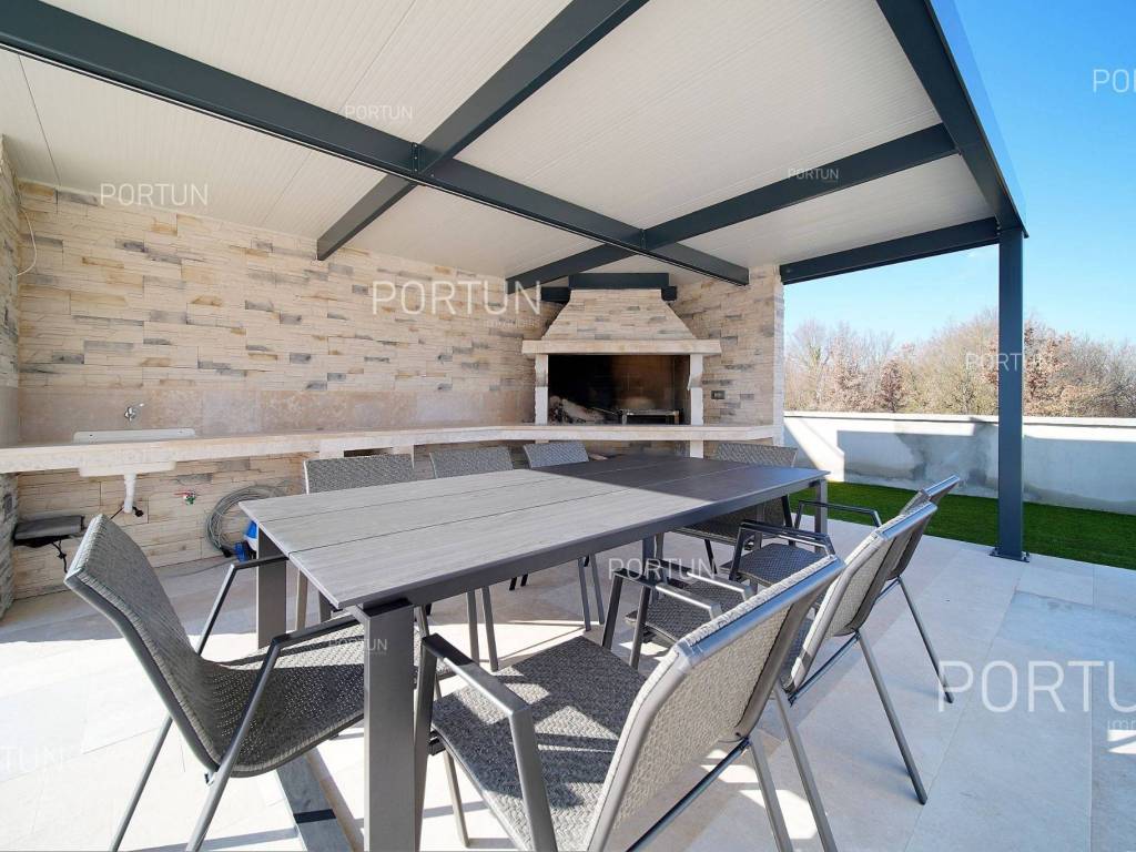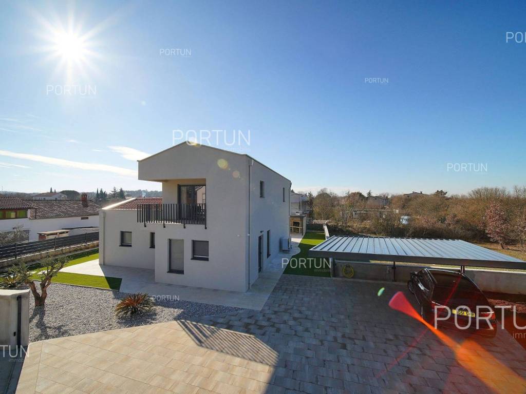 La nuova casa familiare è situata in un tranquillo villaggio lungo la costa occidentale dell'Istria, tra Rovigno e Vrsar. Con quattro camere da letto, cinque bagni, una piscina e due posti auto coperti, è ideale come casa o casa vacanza per famiglie numerose. La casa è principalmente destinata all'affitto ed è già ben attrezzata. Nel cortile, c'è una cucina estiva con zona pranzo, una piscina con area prendisole e abbondante spazio per i bambini per giocare. Il cortile è circondato da una recinzione metallica con siepi sul lato interno. Per quanto riguarda l'attrezzatura interna, la casa è adatta per viverci tutto l'anno. Una pompa di calore con riscaldamento a pavimento e aria condizionata mantiene la temperatura ideale all'interno, mentre sui tetti sono installati collettori solari per il riscaldamento dell'acqua. È inoltre prevista l'installazione di pannelli fotovoltaici. Le stanze sono disposte logicamente, con un soggiorno, cucina e zona pranzo, una camera da letto con bagno, una caldaia, un altro bagno e una lavanderia al piano terra. Al piano superiore ci sono tre camere da letto con bagni e due terrazze coperte. Il cortile dispone di spazi di parcheggio sufficienti, due dei quali si trovano sotto una pensilina con prese per la ricarica di veicoli elettrici. La casa dista solo circa 15 chilometri da Rovigno e Vrsar, il che è ideale per esplorare l'area circostante ricca di bellezze naturali, ottimi ristoranti, baie appartate e altre attrazioni turistiche. PosizioneValli e colline, prati verdi, uliveti e vigneti perfettamente curati che ricordano la Toscana italiana o la Provenza francese rendono unica la penisola istriana! Nella parte occidentale dell'Istria, su una collina a soli 10 km dal mare, si trova San Lorenzo, conosciuta come la città delle 9 torri, circondata dalle mura della città e dall'antica colonna della vergogna nella piazza. La posizione tranquilla ai margini di un piccolo villaggio nelle vicinanze di Sveti Lovreč-San Lorenzo, dove si trova la villa, offre numerosi vantaggi:Mare | Spiaggia 15 km Servizi | Negozio 4 km - Caffè o bar 4 km - Locanda o ristorante 4 km - Scuola elementare 4 km - Marina 14 km Sport e divertimento | Campo da calcetto 4 km - Campo da basket 4 km - La riserva speciale boschiva Kontija 4 km - Il parco adrenalinico 9 km Città vicine | Vrsar-Orsera 13 km - Rovinj-Rovigno 18 km Traffico | Aeroporto di Pola 40 km Attrazioni | Le rovine del borgo medievale Due Castelli 15 km Informazioni di base sulla proprietàLa proprietà con una superficie di 792 mq comprende: Casa principale | 4 Camere da letto - 5 Bagni - 2 PianiMagazzino | 16,00 m2Cucina esterna | 20,00 m2Piscina | 36,00 m2Disposizione dei spaziLa casa luminosa di 179 mq, si sviluppa su due piani, cioè attraverso il piano terra e il 1 piano. Piano terra | L'ingresso della villa è al piano terra. Questo piano da 101,79 m2 comprende un soggiorno con cucina e sala da pranzo, una camera da letto con bagno, una terrazza coperta, un bagno, un corridoio, l'ingresso coperto, la scala, un locale caldaia e una lavanderia. 1 Piano | Scale interne dritte portano al piano superiore, cioè al 1 piano. Questo livello di 77,45 m2 dispone di tre camere da letto con bagno, due terrazze coperte e un corridoio. Le tre stanze più importanti di questa casa sono Il soggiorno con cucina e sala da pranzo | Piano terra - 48,61 m2 - Orientamento sud-est - Uscita sulla terrazza coperta - Grandi pareti di vetro - Set divano in pelle - Un tavolo basso - TV - Camino a legna - Illuminazione moderna - Cucina in una linea - Dotato di elettrodomestici - Bancone da cucina - Macchina per il caffè - Fornello - Forno - Cappa da cucina - Lavastoviglie - Doppio frigorifero - Un tavolo moderno - 8 SedieLa cucina estiva con sala da pranzo | 20,00 m2 - Orientamento sud-est - Uscita nel giardino - Cucina in una linea - Camino - Bancone da cucina - Tavolo grande - 8 Sedie (8x) La camera da letto | Piano terra - 24,70 m2 - Orientamento sud - Uscita nel giardino - Armadio guardaroba - Bagno moderno con doccia - Letto matrimoniale - ToelettaPosto auto Tettoia per parcheggio per due auto Parcheggio per due autoCaratteristiche della villaL'ingresso alla villa è a livello del piano terra, dal lato nord-est, e la comunicazione verticale avviene tramite una scala interna. Le caratteristiche architettoniche fondamentali di questa villa moderna sono: I piani | Piano terra + 1 piano Orientamento | Sud-est Pareti esterne | Rivestimento in pietra + Isolamento in polistirolo 10 cm + Muro di blocchi a incastro 25 cm | Isolamento in polistirolo 10 cm + Muro di blocchi a incastro 25 cm Solaio in calcestruzzo armato Tetto | Tetto a falde ricoperto con tegole di argilla CLASSE E. A+ Costruito nel 2024/2Mobili e attrezzatureMobilia | Mobili moderniAttrezzatura | Sistema di allarme per la casa - Video sorveglianza - Illuminazione - Sanitari - Arredo bagnoSerramenti | Serramenti in PVC - finestre con doppio vetro - Motorizzate tapparelle - Zanzariere - Porta d'ingresso in PVC - Porte interne dal gusto minimalistaMultimedia | TV in soggiorno - TV in ogni camera da letto - TV satellitareRiscaldamento e raffreddamento | Riscaldamento a pavimento - Aria condizionata - Pompe di calore - Collettori solari (2) - Caldaia combinataPavimentazione | Piastrelle in ceramica di prima qualitàSpazi esterniAttrezzatura | Illuminazione per esterno - Irrigazione a gocciaRecinzioni | Siepe di cipresso Leylandii - Siepe di alloro ciliegio - Muro di cemento - Recinzione metallicaIngresso auto | Porta in metallo - Azionamento a motore - Apertura scorrevoleIngresso pedonale | Porta in metalloPiscina all'aperto Piscina a skimmer | Costruzione in cemento - Rivestimento: Liner - Disinfezione dell'acqua con cloro - Impianti di riscaldamento dell'acqua - Illuminazione a LED Ampia terrazza prendisole | Lettini Infrastruttura Collegamento rete elettrica | Corrente a tre fasi | 13,7 kW | Pannelli fotovoltaici 7,4 kW Allacciamento alla rete idrica Depuratore biologic