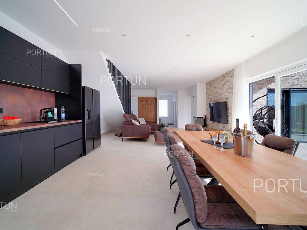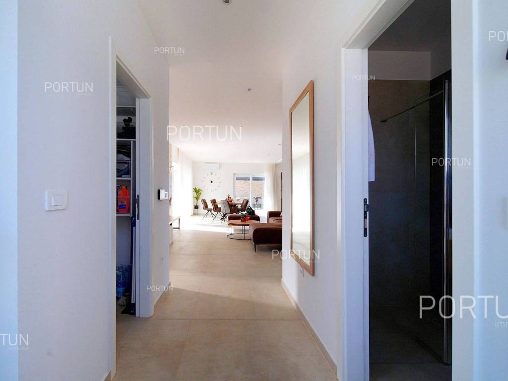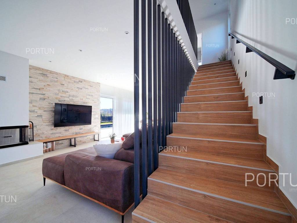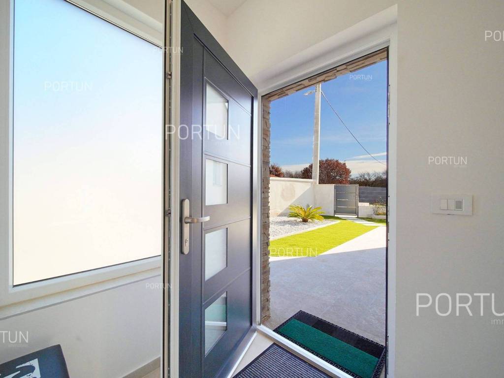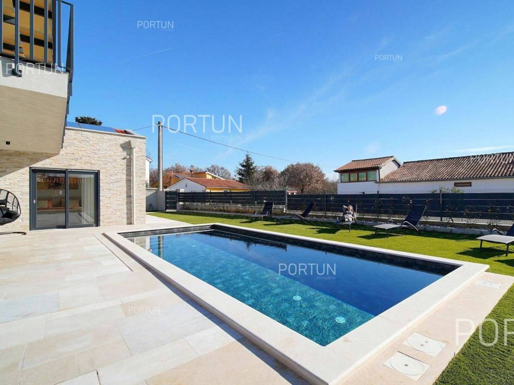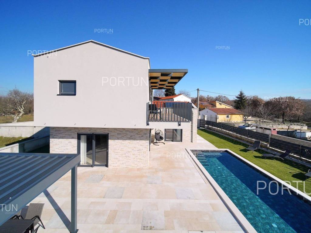 La nuova casa familiare è situata in un tranquillo villaggio lungo la costa occidentale dell'Istria, tra Rovigno e Vrsar. Con quattro camere da letto, cinque bagni, una piscina e due posti auto coperti, è ideale come casa o casa vacanza per famiglie numerose. La casa è principalmente destinata all'affitto ed è già ben attrezzata. Nel cortile, c'è una cucina estiva con zona pranzo, una piscina con area prendisole e abbondante spazio per i bambini per giocare. Il cortile è circondato da una recinzione metallica con siepi sul lato interno. Per quanto riguarda l'attrezzatura interna, la casa è adatta per viverci tutto l'anno. Una pompa di calore con riscaldamento a pavimento e aria condizionata mantiene la temperatura ideale all'interno, mentre sui tetti sono installati collettori solari per il riscaldamento dell'acqua. È inoltre prevista l'installazione di pannelli fotovoltaici. Le stanze sono disposte logicamente, con un soggiorno, cucina e zona pranzo, una camera da letto con bagno, una caldaia, un altro bagno e una lavanderia al piano terra. Al piano superiore ci sono tre camere da letto con bagni e due terrazze coperte. Il cortile dispone di spazi di parcheggio sufficienti, due dei quali si trovano sotto una pensilina con prese per la ricarica di veicoli elettrici. La casa dista solo circa 15 chilometri da Rovigno e Vrsar, il che è ideale per esplorare l'area circostante ricca di bellezze naturali, ottimi ristoranti, baie appartate e altre attrazioni turistiche. PosizioneValli e colline, prati verdi, uliveti e vigneti perfettamente curati che ricordano la Toscana italiana o la Provenza francese rendono unica la penisola istriana! Nella parte occidentale dell'Istria, su una collina a soli 10 km dal mare, si trova San Lorenzo, conosciuta come la città delle 9 torri, circondata dalle mura della città e dall'antica colonna della vergogna nella piazza. La posizione tranquilla ai margini di un piccolo villaggio nelle vicinanze di Sveti Lovreč-San Lorenzo, dove si trova la villa, offre numerosi vantaggi:Mare | Spiaggia 15 km Servizi | Negozio 4 km - Caffè o bar 4 km - Locanda o ristorante 4 km - Scuola elementare 4 km - Marina 14 km Sport e divertimento | Campo da calcetto 4 km - Campo da basket 4 km - La riserva speciale boschiva Kontija 4 km - Il parco adrenalinico 9 km Città vicine | Vrsar-Orsera 13 km - Rovinj-Rovigno 18 km Traffico | Aeroporto di Pola 40 km Attrazioni | Le rovine del borgo medievale Due Castelli 15 km Informazioni di base sulla proprietàLa proprietà con una superficie di 792 mq comprende: Casa principale | 4 Camere da letto - 5 Bagni - 2 PianiMagazzino | 16,00 m2Cucina esterna | 20,00 m2Piscina | 36,00 m2Disposizione dei spaziLa casa luminosa di 179 mq, si sviluppa su due piani, cioè attraverso il piano terra e il 1 piano. Piano terra | L'ingresso della villa è al piano terra. Questo piano da 101,79 m2 comprende un soggiorno con cucina e sala da pranzo, una camera da letto con bagno, una terrazza coperta, un bagno, un corridoio, l'ingresso coperto, la scala, un locale caldaia e una lavanderia. 1 Piano | Scale interne dritte portano al piano superiore, cioè al 1 piano. Questo livello di 77,45 m2 dispone di tre camere da letto con bagno, due terrazze coperte e un corridoio. Le tre stanze più importanti di questa casa sono Il soggiorno con cucina e sala da pranzo | Piano terra - 48,61 m2 - Orientamento sud-est - Uscita sulla terrazza coperta - Grandi pareti di vetro - Set divano in pelle - Un tavolo basso - TV - Camino a legna - Illuminazione moderna - Cucina in una linea - Dotato di elettrodomestici - Bancone da cucina - Macchina per il caffè - Fornello - Forno - Cappa da cucina - Lavastoviglie - Doppio frigorifero - Un tavolo moderno - 8 SedieLa cucina estiva con sala da pranzo | 20,00 m2 - Orientamento sud-est - Uscita nel giardino - Cucina in una linea - Camino - Bancone da cucina - Tavolo grande - 8 Sedie (8x) La camera da letto | Piano terra - 24,70 m2 - Orientamento sud - Uscita nel giardino - Armadio guardaroba - Bagno moderno con doccia - Letto matrimoniale - ToelettaPosto auto Tettoia per parcheggio per due auto Parcheggio per due autoCaratteristiche della villaL'ingresso alla villa è a livello del piano terra, dal lato nord-est, e la comunicazione verticale avviene tramite una scala interna. Le caratteristiche architettoniche fondamentali di questa villa moderna sono: I piani | Piano terra + 1 piano Orientamento | Sud-est Pareti esterne | Rivestimento in pietra + Isolamento in polistirolo 10 cm + Muro di blocchi a incastro 25 cm | Isolamento in polistirolo 10 cm + Muro di blocchi a incastro 25 cm Solaio in calcestruzzo armato Tetto | Tetto a falde ricoperto con tegole di argilla CLASSE E. A+ Costruito nel 2024/2Mobili e attrezzatureMobilia | Mobili moderniAttrezzatura | Sistema di allarme per la casa - Video sorveglianza - Illuminazione - Sanitari - Arredo bagnoSerramenti | Serramenti in PVC - finestre con doppio vetro - Motorizzate tapparelle - Zanzariere - Porta d'ingresso in PVC - Porte interne dal gusto minimalistaMultimedia | TV in soggiorno - TV in ogni camera da letto - TV satellitareRiscaldamento e raffreddamento | Riscaldamento a pavimento - Aria condizionata - Pompe di calore - Collettori solari (2) - Caldaia combinataPavimentazione | Piastrelle in ceramica di prima qualitàSpazi esterniAttrezzatura | Illuminazione per esterno - Irrigazione a gocciaRecinzioni | Siepe di cipresso Leylandii - Siepe di alloro ciliegio - Muro di cemento - Recinzione metallicaIngresso auto | Porta in metallo - Azionamento a motore - Apertura scorrevoleIngresso pedonale | Porta in metalloPiscina all'aperto Piscina a skimmer | Costruzione in cemento - Rivestimento: Liner - Disinfezione dell'acqua con cloro - Impianti di riscaldamento dell'acqua - Illuminazione a LED Ampia terrazza prendisole | Lettini Infrastruttura Collegamento rete elettrica | Corrente a tre fasi | 13,7 kW | Pannelli fotovoltaici 7,4 kW Allacciamento alla rete idrica Depuratore biologic