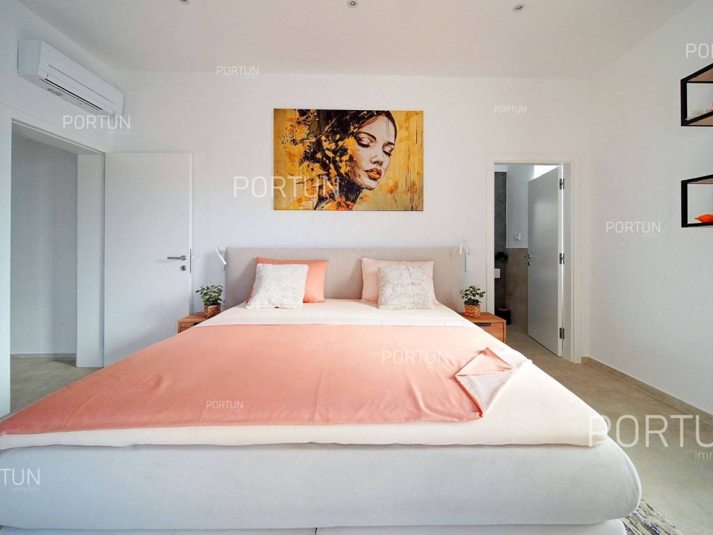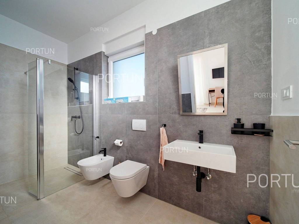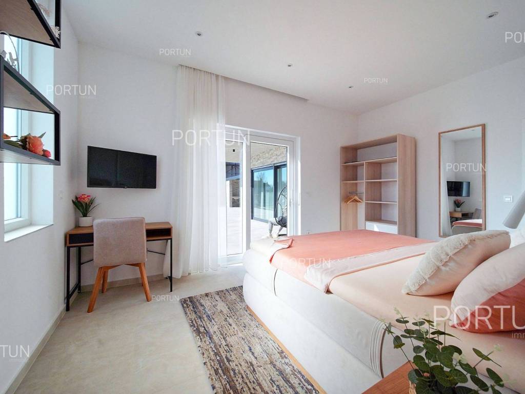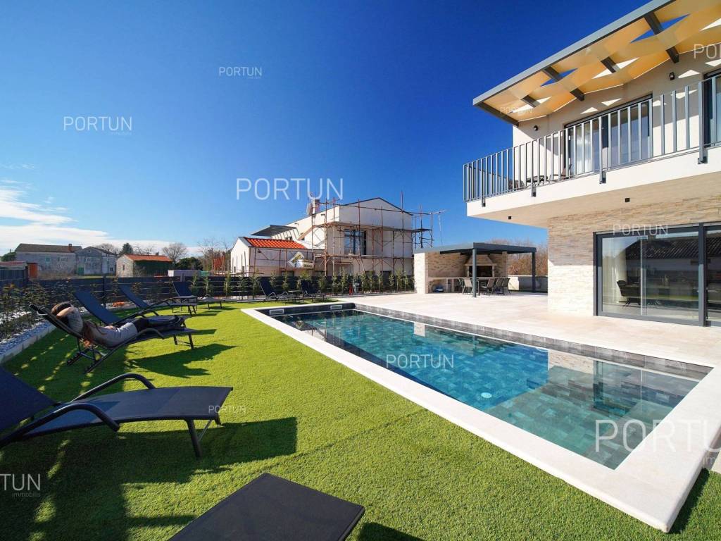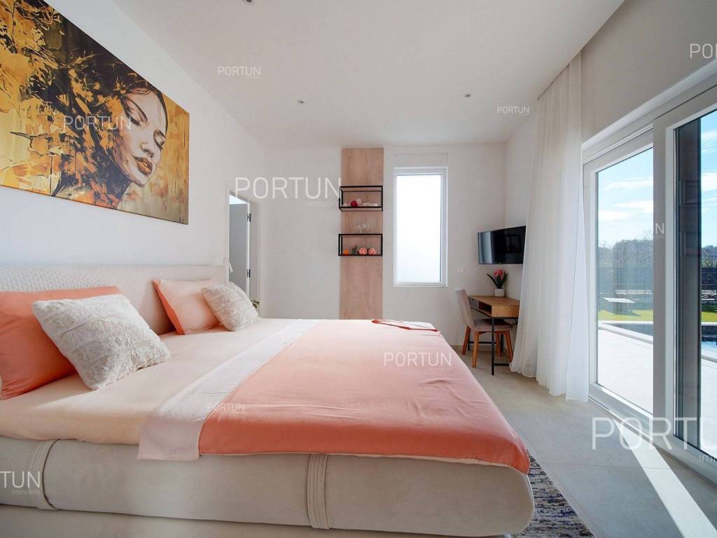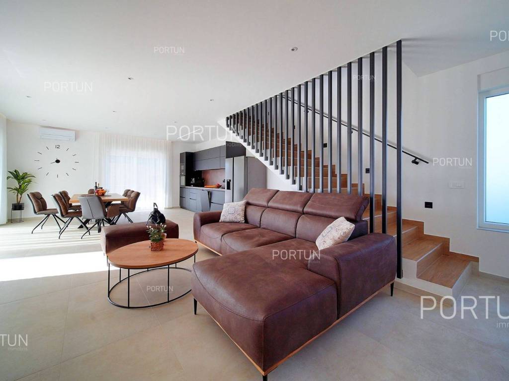 La nuova casa familiare è situata in un tranquillo villaggio lungo la costa occidentale dell'Istria, tra Rovigno e Vrsar. Con quattro camere da letto, cinque bagni, una piscina e due posti auto coperti, è ideale come casa o casa vacanza per famiglie numerose. La casa è principalmente destinata all'affitto ed è già ben attrezzata. Nel cortile, c'è una cucina estiva con zona pranzo, una piscina con area prendisole e abbondante spazio per i bambini per giocare. Il cortile è circondato da una recinzione metallica con siepi sul lato interno. Per quanto riguarda l'attrezzatura interna, la casa è adatta per viverci tutto l'anno. Una pompa di calore con riscaldamento a pavimento e aria condizionata mantiene la temperatura ideale all'interno, mentre sui tetti sono installati collettori solari per il riscaldamento dell'acqua. È inoltre prevista l'installazione di pannelli fotovoltaici. Le stanze sono disposte logicamente, con un soggiorno, cucina e zona pranzo, una camera da letto con bagno, una caldaia, un altro bagno e una lavanderia al piano terra. Al piano superiore ci sono tre camere da letto con bagni e due terrazze coperte. Il cortile dispone di spazi di parcheggio sufficienti, due dei quali si trovano sotto una pensilina con prese per la ricarica di veicoli elettrici. La casa dista solo circa 15 chilometri da Rovigno e Vrsar, il che è ideale per esplorare l'area circostante ricca di bellezze naturali, ottimi ristoranti, baie appartate e altre attrazioni turistiche. PosizioneValli e colline, prati verdi, uliveti e vigneti perfettamente curati che ricordano la Toscana italiana o la Provenza francese rendono unica la penisola istriana! Nella parte occidentale dell'Istria, su una collina a soli 10 km dal mare, si trova San Lorenzo, conosciuta come la città delle 9 torri, circondata dalle mura della città e dall'antica colonna della vergogna nella piazza. La posizione tranquilla ai margini di un piccolo villaggio nelle vicinanze di Sveti Lovreč-San Lorenzo, dove si trova la villa, offre numerosi vantaggi:Mare | Spiaggia 15 km Servizi | Negozio 4 km - Caffè o bar 4 km - Locanda o ristorante 4 km - Scuola elementare 4 km - Marina 14 km Sport e divertimento | Campo da calcetto 4 km - Campo da basket 4 km - La riserva speciale boschiva Kontija 4 km - Il parco adrenalinico 9 km Città vicine | Vrsar-Orsera 13 km - Rovinj-Rovigno 18 km Traffico | Aeroporto di Pola 40 km Attrazioni | Le rovine del borgo medievale Due Castelli 15 km Informazioni di base sulla proprietàLa proprietà con una superficie di 792 mq comprende: Casa principale | 4 Camere da letto - 5 Bagni - 2 PianiMagazzino | 16,00 m2Cucina esterna | 20,00 m2Piscina | 36,00 m2Disposizione dei spaziLa casa luminosa di 179 mq, si sviluppa su due piani, cioè attraverso il piano terra e il 1 piano. Piano terra | L'ingresso della villa è al piano terra. Questo piano da 101,79 m2 comprende un soggiorno con cucina e sala da pranzo, una camera da letto con bagno, una terrazza coperta, un bagno, un corridoio, l'ingresso coperto, la scala, un locale caldaia e una lavanderia. 1 Piano | Scale interne dritte portano al piano superiore, cioè al 1 piano. Questo livello di 77,45 m2 dispone di tre camere da letto con bagno, due terrazze coperte e un corridoio. Le tre stanze più importanti di questa casa sono Il soggiorno con cucina e sala da pranzo | Piano terra - 48,61 m2 - Orientamento sud-est - Uscita sulla terrazza coperta - Grandi pareti di vetro - Set divano in pelle - Un tavolo basso - TV - Camino a legna - Illuminazione moderna - Cucina in una linea - Dotato di elettrodomestici - Bancone da cucina - Macchina per il caffè - Fornello - Forno - Cappa da cucina - Lavastoviglie - Doppio frigorifero - Un tavolo moderno - 8 SedieLa cucina estiva con sala da pranzo | 20,00 m2 - Orientamento sud-est - Uscita nel giardino - Cucina in una linea - Camino - Bancone da cucina - Tavolo grande - 8 Sedie (8x) La camera da letto | Piano terra - 24,70 m2 - Orientamento sud - Uscita nel giardino - Armadio guardaroba - Bagno moderno con doccia - Letto matrimoniale - ToelettaPosto auto Tettoia per parcheggio per due auto Parcheggio per due autoCaratteristiche della villaL'ingresso alla villa è a livello del piano terra, dal lato nord-est, e la comunicazione verticale avviene tramite una scala interna. Le caratteristiche architettoniche fondamentali di questa villa moderna sono: I piani | Piano terra + 1 piano Orientamento | Sud-est Pareti esterne | Rivestimento in pietra + Isolamento in polistirolo 10 cm + Muro di blocchi a incastro 25 cm | Isolamento in polistirolo 10 cm + Muro di blocchi a incastro 25 cm Solaio in calcestruzzo armato Tetto | Tetto a falde ricoperto con tegole di argilla CLASSE E. A+ Costruito nel 2024/2Mobili e attrezzatureMobilia | Mobili moderniAttrezzatura | Sistema di allarme per la casa - Video sorveglianza - Illuminazione - Sanitari - Arredo bagnoSerramenti | Serramenti in PVC - finestre con doppio vetro - Motorizzate tapparelle - Zanzariere - Porta d'ingresso in PVC - Porte interne dal gusto minimalistaMultimedia | TV in soggiorno - TV in ogni camera da letto - TV satellitareRiscaldamento e raffreddamento | Riscaldamento a pavimento - Aria condizionata - Pompe di calore - Collettori solari (2) - Caldaia combinataPavimentazione | Piastrelle in ceramica di prima qualitàSpazi esterniAttrezzatura | Illuminazione per esterno - Irrigazione a gocciaRecinzioni | Siepe di cipresso Leylandii - Siepe di alloro ciliegio - Muro di cemento - Recinzione metallicaIngresso auto | Porta in metallo - Azionamento a motore - Apertura scorrevoleIngresso pedonale | Porta in metalloPiscina all'aperto Piscina a skimmer | Costruzione in cemento - Rivestimento: Liner - Disinfezione dell'acqua con cloro - Impianti di riscaldamento dell'acqua - Illuminazione a LED Ampia terrazza prendisole | Lettini Infrastruttura Collegamento rete elettrica | Corrente a tre fasi | 13,7 kW | Pannelli fotovoltaici 7,4 kW Allacciamento alla rete idrica Depuratore biologic