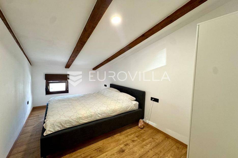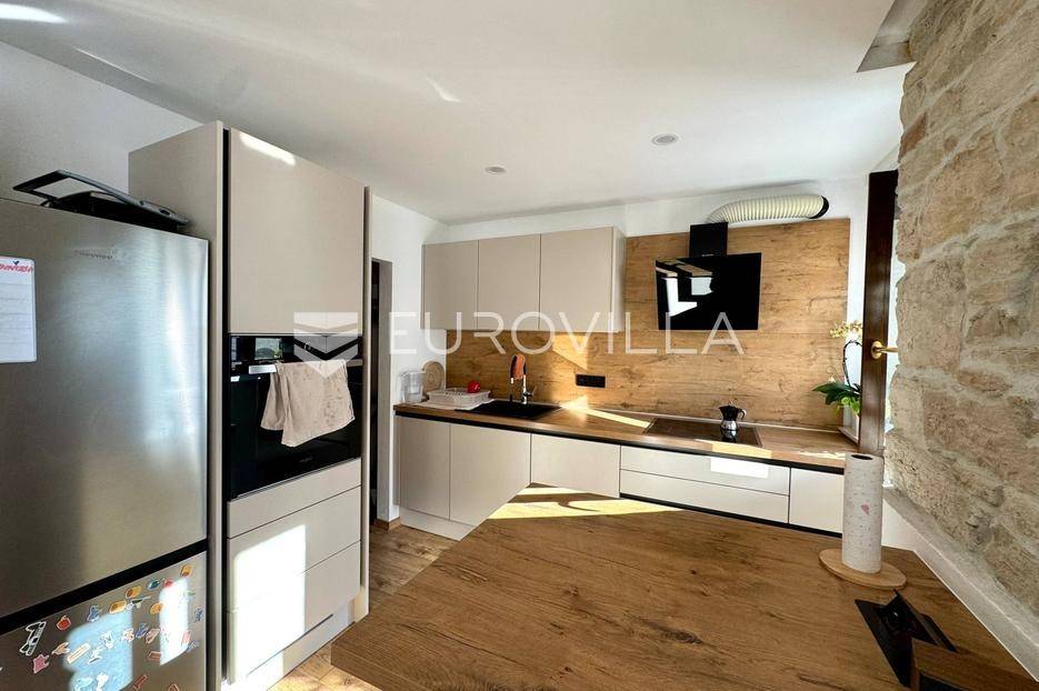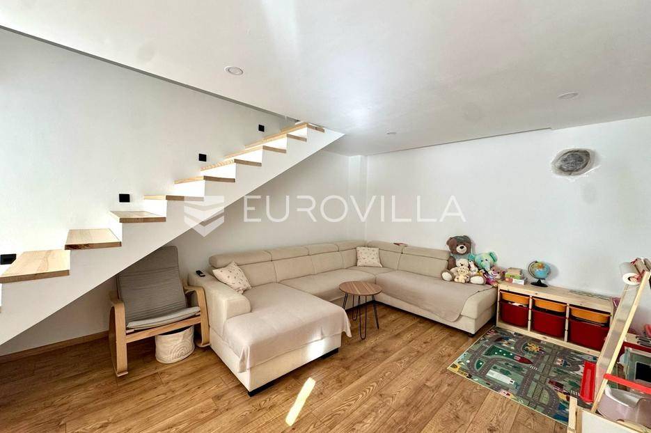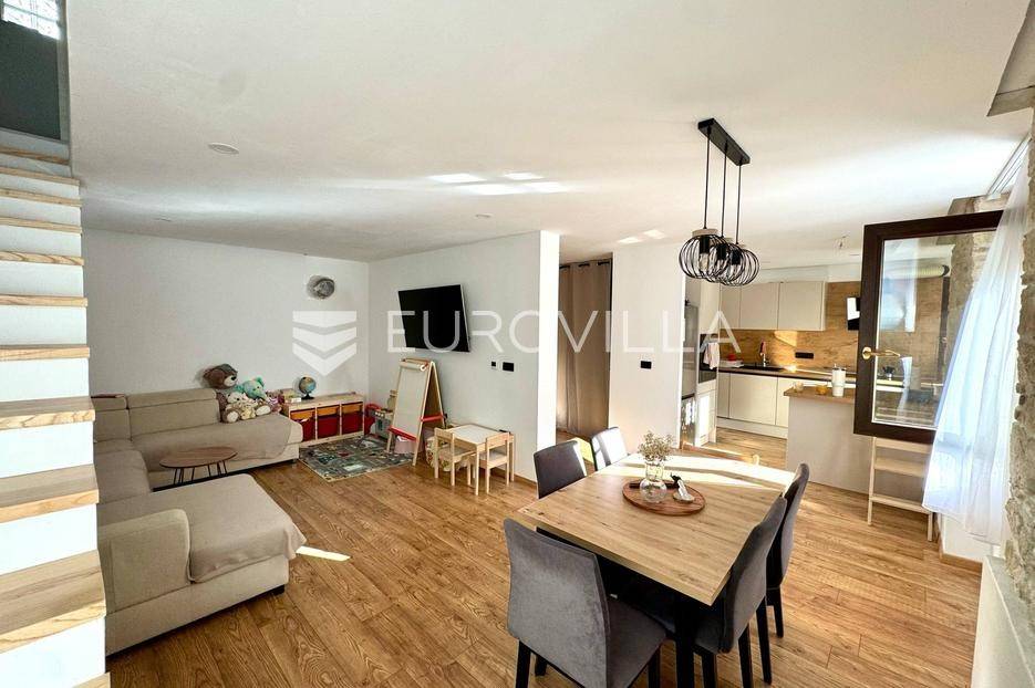 Stan površine 115 m2 proteže se na dvije etaže, kroz prizemlje i kat.Smjestio se u starijoj, vrlo urednoj, očuvanoj i obnovljenoj zgradi s ukupno tri stambene jedinice.Sastoji se od ulaznog hodnika, vešeraja, dnevnog boravka s kuhinjom i blagovaonicom, ostave i kupaonice u prizemlju te unutarnjim stepenicama dolazimo na kat gdje su četiri spavaće sobe i kupaonica.Stan je potpuno renoviran 2023. godine pri čemu su mijenjane sve instalacije. Postavljena je nova, visokokvalitetna vanjska troslojna PVC stolarija s komarnicima i roletnama što osigurava potpunu zvučnu izolaciju neovisno o vanjskim utjecajima. Na podovima je postavljena keramika, a cijeli stan je opremljen podnim grijanjem kao i klima uređajima za dodatnu ugodnost.Nekretnina je kvalitetno opremljena i namještena te kao takva predstavlja savršen dom za one koji cijene život u gradu. Lokacija je izuzetna - u blizini škola, fakulteta, tržnice, trgovina i svih ključnih sadržaja.