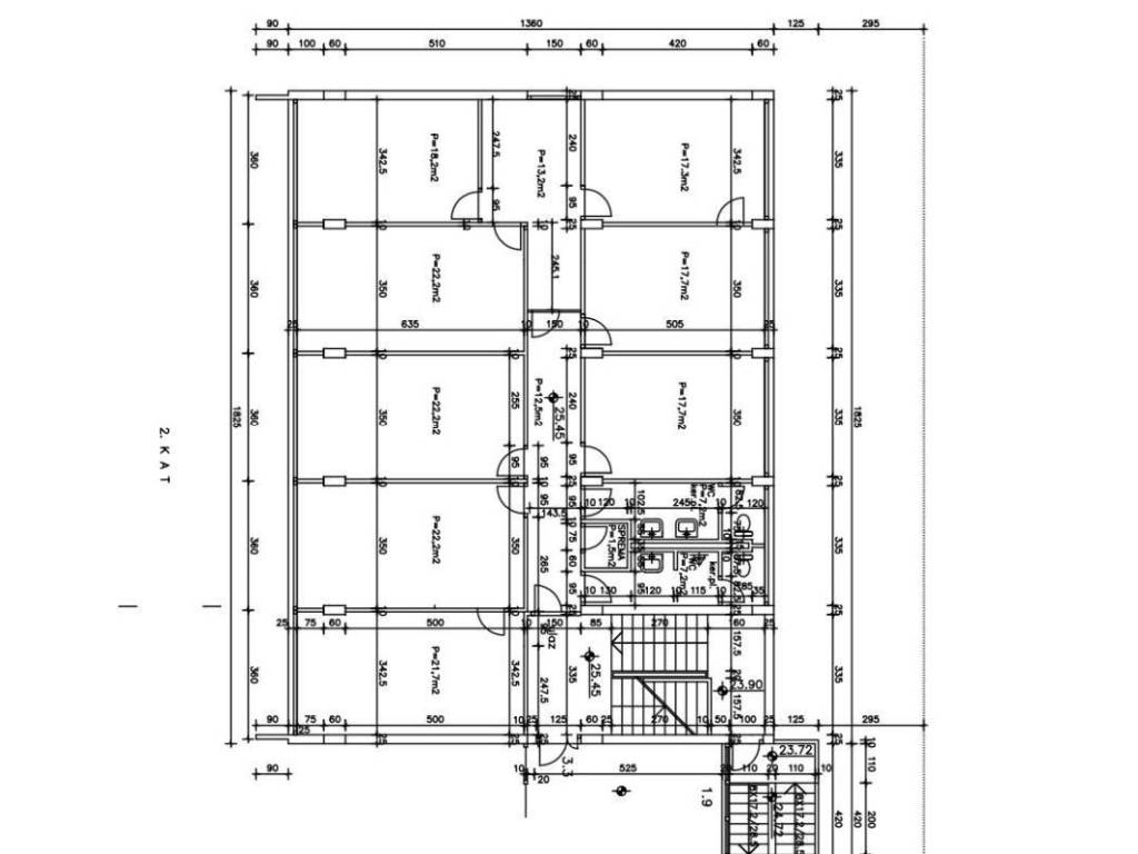 Atraktivno pozicionirani uredski poslovni prostori smješteni u blizini centra grada. Prostori su smješteni na 2. i 4. katu poslovne zgrade bez lifta, ukupne površine od 204 m2 po katu. Prostori su orijentirani sjever – jug, imaju lijepi pogled te veliku količinu dnevnog svjetla.   Prostori imaju isti tlocrt, a sastoje se od dugog hodnika, osam uredskih prostorija (cca 20 m2 po prostoriji) te dva sanitarna čvora. Obzirom na konstantno korištenje, prostori zahtijevaju malo osvježenja, ali su u potpunosti funkcionalni.   Zgrada ima dobru prometnu povezanost sa glavnim gradskim prometnicama, a veliki javni parking se nalazi u blizini. Obzirom na relativno veliku površinu, prostori predstavljaju dobar izbor za firme uredskog poslovanja sa više zaposlenika.
