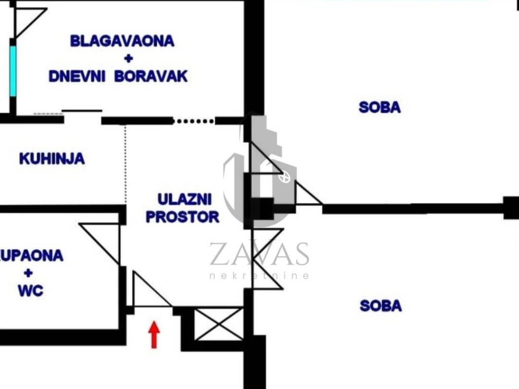 Stan se sastoji od: dnevnog boravka, spavaće sobe, kuhinje, blagavaonice, kupaonice, ostave i hodnika.