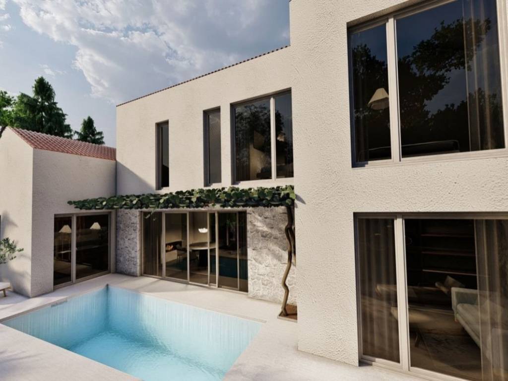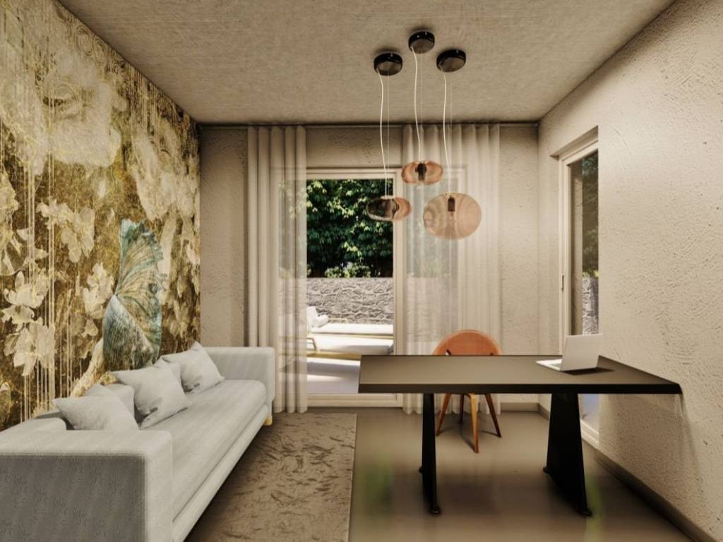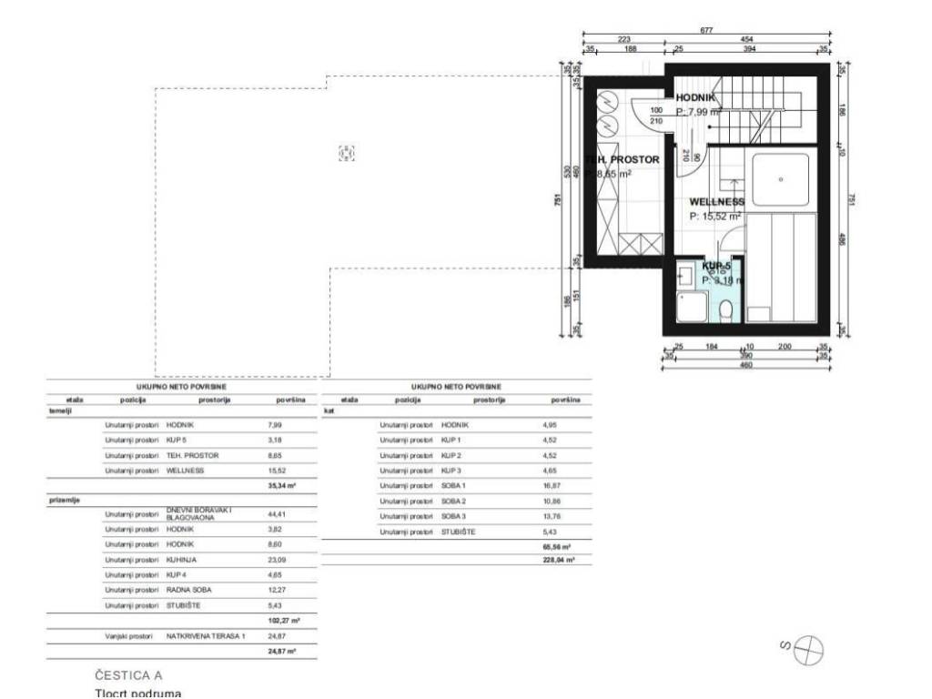 Otok Krk, Vrbnik, Garica, prodaja atraktivnog građevinskog zemljišta površine 484 m2, s predanom dokumentacijom za ishodovanje građevinske dozvole za izgradnju urbane mediteranske vile površine 227,44 m2, s bazenom i okućnicom oplemenjenom mediteranskim biljkama. Kuća se sastoji od suterena s wellnesom, tehničkom sobom, kupaonicom i hodnikom, prizemlja s dnevnom sobom, kuhinjom, blagovaonom, spavaćom sobom, kupaonicom, stubištem i natkrivenom terasom od 22 m2 s ljetnom kuhinjom te prvog kata s tri spavaće sobe i tri kupaonice. Mirna lokacija okružena zelenilom, 4000 m od mora i centra Vrbnika.