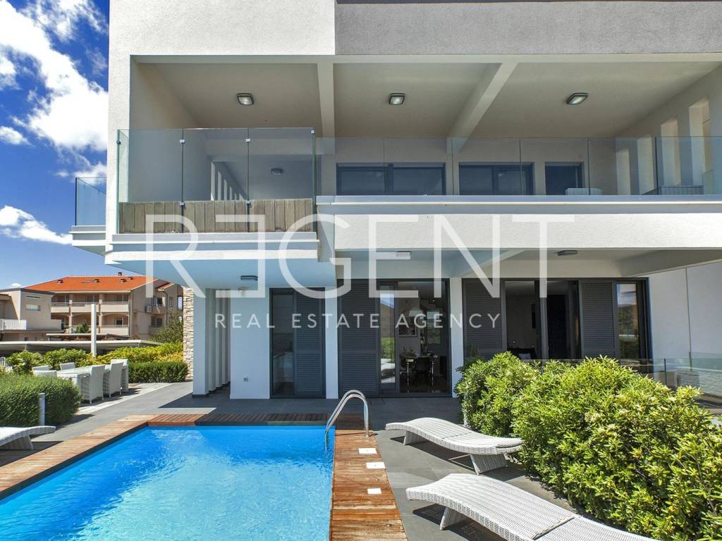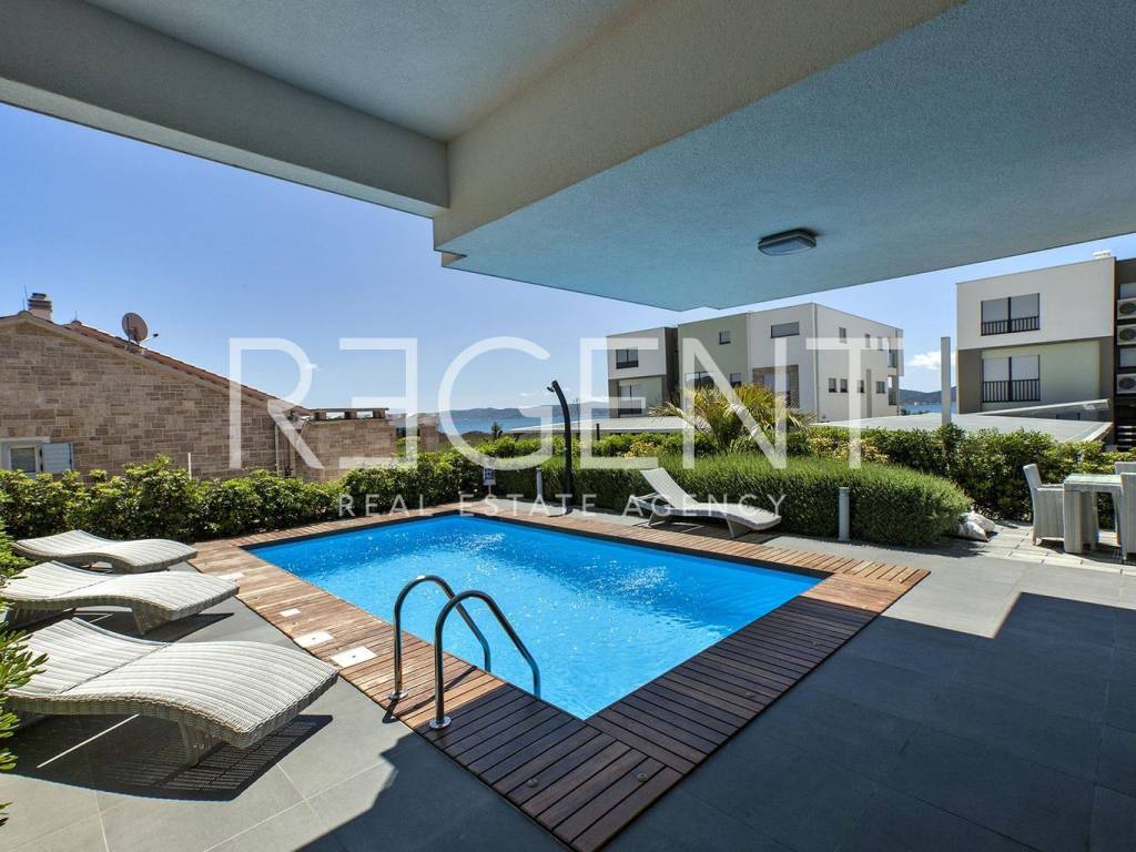 Stiamo mediando la vendita di una villa su due piani di 170 m² a Sukošan, progettata secondo gli standard moderni, con una disposizione funzionale dello spazio. Si compone di: Soggiorno Cucina Tre camere da letto con bagno privato WC con lavanderia Due terrazze Piscina Jacuzzi La cucina, la sala da pranzo e il soggiorno sono collegati al piano superiore della villa da scale interne che conducono alla zona notte. Inoltre, dall'ampio soggiorno si ha accesso diretto alla piscina.Al piano superiore si trovano le camere da letto, ognuna con il proprio bagno. Tutte le camere hanno accesso a una terrazza attrezzata con mobili per il relax e una jacuzzi.Le camere da letto includono un letto che può essere diviso in due letti singoli e una poltrona letto pieghevole. La villa dispone di tre bagni, due dei quali con doccia e uno con vasca angolare. Caratteristiche aggiuntive: Vasca idromassaggio sulla terrazza superiore Cucina estiva Situata in una posizione attraente, la villa offre un facile accesso a spiagge, strutture ricreative e ristoranti.Per ulteriori informazioni o per concordare una visita, non esitate a contattarci.