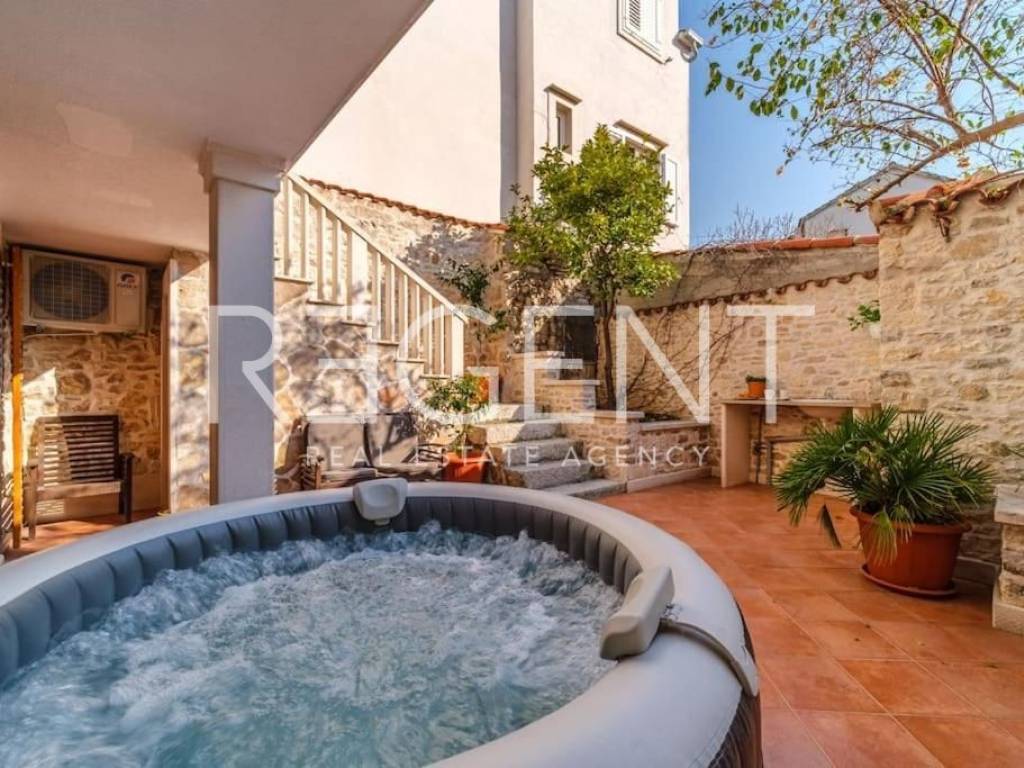 In una zona tranquilla di Sutivan, a soli 200 metri dalla spiaggia, si trova questa spaziosa e completamente attrezzata casa ideale per le vacanze, la vita familiare o l'affitto turistico. Situata nelle immediate vicinanze delle spiagge di Majakovac e Grgina, offre una perfetta combinazione di fascino mediterraneo e funzionalità. La casa è stata completamente ristrutturata e si estende su tre piani con un totale di 180 m² di superficie abitabile. Al piano terra si trova una cucina, un soggiorno, una camera da letto e un bagno. Al primo piano ci sono due camere da letto e due bagni, mentre il secondo piano offre un'ulteriore cucina, un soggiorno, un'altra camera da letto, un bagno e l'accesso a una spaziosa terrazza di 25 m². La casa comprende anche un cortile privato di 30 m², ideale per rilassarsi all'ombra degli ulivi o godersi le calde serate. Viene venduta completamente arredata, il che rende questa proprietà immediatamente pronta per essere abitata o affittata turisticamente. Il giardino comprende un giardino privato, una zona pranzo all'aperto e un parcheggio privato. Grazie alla sua posizione, alle sue caratteristiche e al suo arredamento, questa casa rappresenta un'eccellente opportunità per chi cerca un'oasi di pace vicino al mare, ma anche un ottimo investimento per l'affitto turistico. Per ulteriori informazioni e per fissare un appuntamento per la visita, non esitate a contattarci!