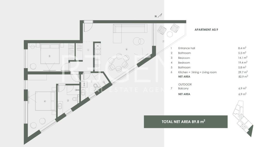 In cima a una delle località più esclusive della Croazia, nel cuore di Crveni Vrh, sta nascendo il prestigioso Golf Resort Crveni Vrh – una combinazione di lusso senza tempo, architettura superiore e natura mozzafiato. Il resort comprende 40 lussuosi appartamenti, progettati con cura per soddisfare i più alti standard di comfort ed eleganza. Ogni dettaglio degli interni è stato accuratamente scelto per offrire agli inquilini un'esperienza di soggiorno unica. In un esclusivo resort al piano terra dell'edificio si trova un appartamento con tre camere da letto A0.9. L'appartamento ha una superficie abitabile totale di 89,8 m2. Si compone di: ingresso (8,4 m2), bagno (5,5 m2), cucina con sala da pranzo e soggiorno (29,7 m2), camera da letto 1 (14,1 m2), camera da letto 2 (19,4 m2), bagno 2 (5,8 m2), balcone (6,9 m2). L'edificio è posizionato in modo ideale: Dal lato anteriore, si apre una vista spettacolare su Pirano, la Baia di Pirano, l'Italia e le magnifiche Dolomiti. Dal lato posteriore, la vista si apre sul verde paesaggio del Golf Adriatic e sui magici paesaggi dell'Istria. All'interno del resort sono a disposizione degli inquilini: Garage privati su due livelli sotterranei Garage speciali per veicoli da golf Piscina con vista panoramica Servizi esclusivi di un hotel di lusso: donna delle pulizie, tuttofare, navetta privata e chef privato – direttamente a casa tua. Il Golf Resort offre due modelli di noleggio attraverso una partnership con un hotel di lusso: Pool di affitto stagionale – noleggio semplice durante l'intera stagione estiva. Pool di affitto flessibile – i proprietari scelgono le date in cui vogliono affittare. Senza stress, con supporto professionale, la tua proprietà lavora per te. Golf Resort Crveni Vrh – il luogo dove lusso, natura e comfort diventano il tuo nuovo standard. ATTREZZATURA: Sistema intelligente di riscaldamento, raffrescamento e ventilazione – comfort durante tutto l'anno. L'edificio è dotato di un moderno sistema di riscaldamento e raffrescamento tramite pompa di calore che utilizza fonti di energia rinnovabili. Il sistema garantisce la massima efficienza energetica, riducendo i costi delle utenze e le emissioni di CO₂. In ogni appartamento sono installati diffusori per un riscaldamento e un raffrescamento uniformi, che consentono una climatizzazione silenziosa e discreta senza radiatori visibili o condizionatori d'aria classici. L'intero edificio dispone di un sistema di ventilazione centralizzato con recupero di calore, che fornisce continuamente aria fresca in tutte le stanze, mantenendo il calore in inverno e un'atmosfera piacevole in estate. Grazie all'utilizzo di energia verde e rinnovabile, questi sistemi consentono non solo un comfort superiore, ma anche una vita sostenibile in conformità con i più recenti standard di efficienza energetica. Posizione: Quest'area offre una combinazione perfetta di natura incontaminata, gastronomia superiore e un ricco patrimonio culturale. Nelle vicinanze si trovano le affascinanti cittadine slovene di Pirano e Portorose, note per la loro storia, i porti turistici e l'atmosfera vivace. Il resort si trova proprio sulla costa adriatica, nelle immediate vicinanze dei prestigiosi complessi alberghieri Kempinski Adriatic e Petram Resort & Residences. Il Kempinski Adriatic è noto per la sua offerta di lusso ed esclusiva senza pari, mentre il Kempinski Adriatic Golf Club si distingue come la destinazione perfetta per gli appassionati di golf di tutti i livelli. D'altra parte, il Petram Resort & Residences combina un design moderno con un servizio eccellente, offrendo una ricchezza di contenuti adatti sia al relax che a uno stile di vita attivo. Nelle immediate vicinanze è prevista la costruzione di diversi nuovi campi da golf, con l'obiettivo di rendere quest'area la principale destinazione golfistica della regione. L'ambiente del Golf Resort Crveni Vrh offre un perfetto equilibrio tra bellezza naturale, lusso e attività sportive, offrendo un'opportunità unica per sperimentare l'autentico stile di vita mediterraneo. Per maggiori informazioni su questo progetto esclusivo, ti preghiamo di contattarci!