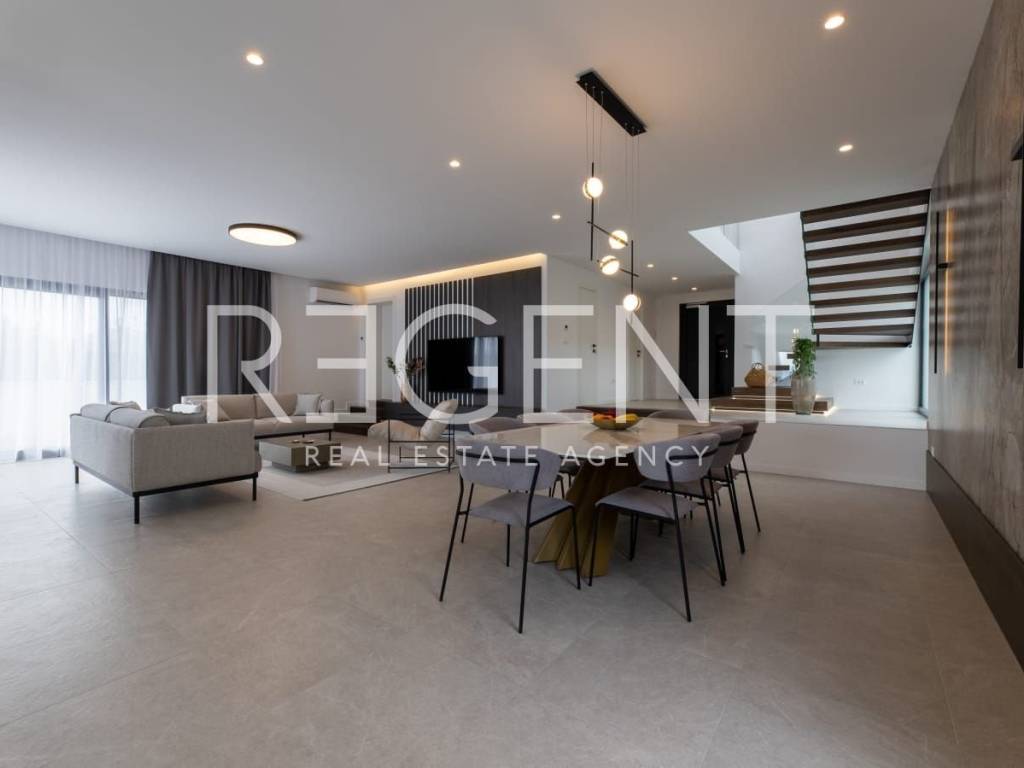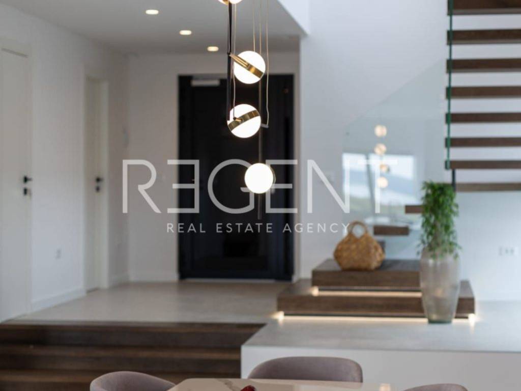 Presentiamo con orgoglio una villa di lusso situata a Kaštel Stari, una combinazione ideale di ambiente tranquillo e vista indisturbata sul mare e sulle isole. Questa splendida villa si estende su due piani, comprendendo ben 330 m² di superficie abitabile ed è situata su un ampio terreno di 1130 m². Piano terra per relax e divertimento: Il piano terra colpisce per la sua diversità di contenuti. Qui troverai servizi utili per il benessere fisico e mentale. Goditi la palestra per mantenerti in forma, la rilassante sauna e il lussuoso bagno. L'ampio soggiorno e la cucina con sala da pranzo creano il luogo ideale per riunioni di famiglia e cene serali. Al piano terra si trovano anche un ripostiglio e un locale tecnico. Cinque camere da letto per privacy e comfort: Al piano superiore si trovano cinque ampie camere da letto, ognuna con il proprio bagno. Ogni camera ha il suo accesso a un balcone o una terrazza, offrendoti una connessione indisturbata con il bellissimo ambiente esterno. Arredamento esclusivo con ogni dettaglio in mente: L'arredamento di questa villa è stato affidato ad architetti esperti che hanno prestato attenzione anche al minimo dettaglio. Porte di design, interni ariosi e materiali di alta qualità come la ceramica al piano terra e il parquet nelle camere, infissi in alluminio creano un'esperienza di lusso. Uno spazio interno ed esterno progettato in modo intelligente, arricchito da servizi come un tavolo da biliardo, una sauna, una palestra, una piscina e un parco giochi, garantisce che il soggiorno nella villa non sia solo confortevole, ma anche pieno di divertimento per tutta la famiglia. Comfort moderni per una vita spensierata: Questa villa offre comfort come riscaldamento a pavimento, videosorveglianza, alzacristalli elettrici, vetri a tre strati e sistema di allarme e climatizzazione a zone. La cucina è dotata di elettrodomestici di alta gamma. Posizione perfetta per connessione e riposo: La posizione della villa è eccezionale, situata vicino alla strada principale. Questa posizione strategica garantisce un ottimo collegamento con le città vicine come Trogir e Spalato, ed è a pochi minuti dall'aeroporto. La villa ha un avviato affitto turistico e realizza un'ottima occupazione. Se stai cercando l'armonia perfetta tra lusso, comfort e ambiente tranquillo, questa villa è la tua occasione.
