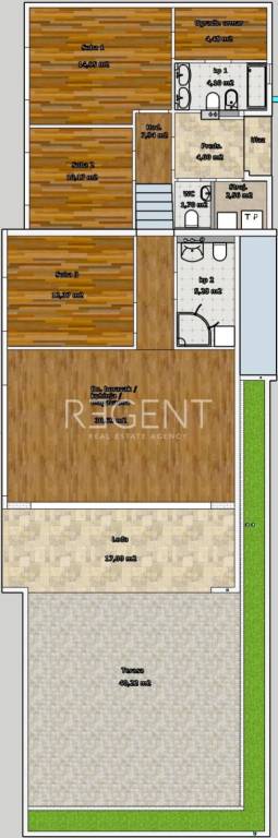 L'appartamento si trova in cima a un moderno edificio residenziale con un totale di tre appartamenti, situato in una delle zone residenziali più tranquille e verdi di Zagabria, vicino al centro della città. Questa posizione offre un perfetto equilibrio tra privacy, natura e accessibilità a tutti i servizi importanti. La superficie totale dell'appartamento è di 132 m2 e si estende sull'intero ultimo piano dell'edificio, con accesso a una spaziosa terrazza di 40 m², che offre una vista sulla natura circostante ed è ideale per rilassarsi in tutte le stagioni. Grazie alle ampie superfici vetrate, il soggiorno, la cucina e la camera da letto principale sono inondati di luce naturale e si collegano con lo spazio esterno. L'interno dell'appartamento è progettato con particolare attenzione alla qualità, al comfort e all'eleganza. L'appartamento comprende: ingresso, soggiorno open space con cucina e sala da pranzo, tre camere da letto, due bagni e un ulteriore bagno per gli ospiti. La camera da letto principale ha il proprio bagno e cabina armadio. Tutte le camere offrono funzionalità e tranquillità. L'appartamento ha accesso al giardino. Nella costruzione e nell'arredamento sono stati utilizzati materiali di alta qualità: i pavimenti includono parquet a listoni e ceramiche delle collezioni Mirage e Cote d'Este, mentre i sanitari sono di marca Globo, Villeroy & Boch e Zucchetti. L'appartamento dispone di un sistema di riscaldamento a pavimento tramite pompe di calore, finestre in PVC Rehau con vetro a tre strati, persiane in alluminio con sollevatori elettrici e un alto livello di isolamento termico e acustico. La proprietà comprende un posto auto in garage e un parcheggio esterno coperto. Il completamento dei lavori è previsto per agosto 2025. Nelle vicinanze si trovano scuola, asilo, negozio, banca, ufficio postale, centro sportivo, parco e mezzi pubblici, il che rende questa posizione ideale per la vita familiare. Per ulteriori informazioni o per fissare un appuntamento per una visita, non esitate a contattarci!