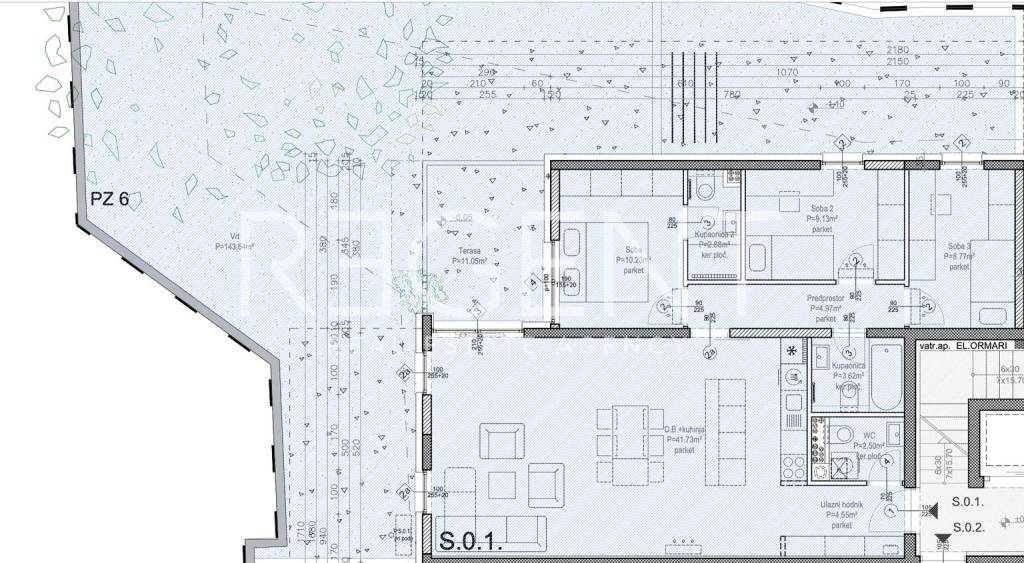 Lussuoso appartamento con quattro camere da letto situato al piano terra di un nuovo edificio residenziale con una superficie chiusa totale di 111 m2. La superficie totale dell'appartamento con accessori è di 98,62 m2. Si compone di: ingresso, disimpegno, camera 1, camera 2, camera 3, soggiorno, sala da pranzo e cucina, 1° bagno, 2° bagno, WC e terrazza. Maggiori informazioni sull'edificio: La parte non costruita del lotto intorno all'edificio sarà ben curata con verde basso e alto. Gli appartamenti al piano terra hanno accesso alla parcella sotto forma di giardino privato. L'accesso veicolare alla parcella è dal lato sud-est dalla strada pubblica di via Jordanovac. L'edificio è accessibile a piedi dall'angolo nord-est. L'ingresso al garage sotterraneo si trova al livello della via Jordanovac, senza pendenza. Il sistema strutturale di base dell'edificio è costituito da pareti, pilastri e travi in cemento armato e solette. L'altezza del pavimento finito è di 2,85 m, il che rende questa proprietà ariosa e l'impressione di uno spazio aperto vicino alle grandi aperture è ancora più attraente. Il tetto è progettato come calpestabile piatto, sul quale gli appartamenti all'ultimo piano avranno accesso e utilizzo delle proprie terrazze (ceramica su supporti). Le pareti interne e le finiture sono in doppio Knauf su entrambi i lati (riempiti di lana), i pavimenti sono eseguiti come galleggianti. Le scale comuni sono in cemento armato monolitico. Per il principale sistema tecnico di riscaldamento negli appartamenti, è previsto un sistema di riscaldamento a pavimento a gas per ogni appartamento con una caldaia a condensazione a gas Viessman con un serbatoio di acqua calda aggiuntivo. Il riscaldamento sarà a pavimento. La preparazione dell'acqua calda è prevista con i suddetti sistemi di caldaie a condensazione a gas per ogni appartamento. Sarà inoltre installata l'aria condizionata split a soffitto Inverter, che avrà la possibilità di riscaldare e raffreddare. La classe energetica prevista dell'edificio è A+. L'impianto elettrico a bassa tensione (telefonia, informatica, impianto TV) è posato all'interno dell'edificio a seconda dello spazio specifico. Il progetto prevede l'installazione di un telefono di casa per stabilire un collegamento audio-video tra il citofono e i telefoni di casa all'interno dell'edificio. Il sistema è composto da citofoni con illuminazione automatica integrata, un altoparlante all'interno dell'edificio e una serratura elettrica sulla porta d'ingresso. Nell'edificio sarà installato un ascensore che parte dal garage fino all'ultimo piano, ovvero il 2° piano. Le finestre e le porte vetrate e le pareti vetrate in tutte le aperture dell'edificio saranno realizzate con vetri con almeno triplo vetro IZO con due vetri, rivestiti con rivestimento a basso emissivo, telai multicamera con interruzione dei ponti termici con un alto livello di isolamento termico. Il sistema Gealan-Kubus definisce un nuovo design per le finestre in architettura. Grazie all'ampia superficie vetrata, offre una maggiore quantità di luce e trasparenza per nuove possibilità di design. Dall'interno, il nuovo sistema è progettato con una superficie semplice senza giunzioni inutili, mentre dall'esterno crea un'impressione generale armoniosa grazie alle sovrapposizioni rettangolari. La protezione dalle radiazioni termiche negli spazi abitativi è prevista con elementi esterni a persiana per la protezione dall'insolazione. La carpenteria interna sarà realizzata in legno fino al soffitto. L'edificio si trova in una posizione eccellente a Jordanovac. Inoltre, ci sono ville urbane più basse nelle vicinanze. Nelle vicinanze si trova via Petrova (100 m), il parco Maksimir, KBC Zagreb Rebro, una scuola elementare e media e un asilo. Considerato che l'edificio si trova vicino al centro, consente un'eccellente connessione di trasporto. Per maggiori informazioni, non esitate a contattarci.
