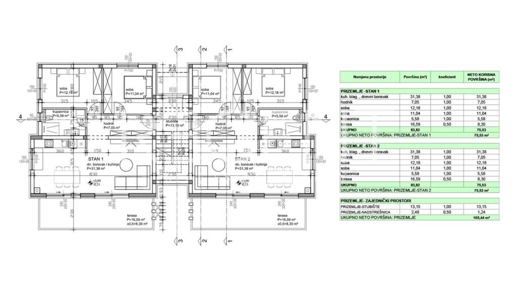 Appartamento con tre locali di 75,53 m², situato al piano terra di un moderno edificio residenziale a Sukošan, vicino a Zara. L'appartamento si trova in una posizione tranquilla, a pochi minuti a piedi dal mare e da tutti i servizi importanti. L'appartamento è composto da un corridoio, due camere da letto, un bagno, una cucina e un soggiorno con accesso al terrazzo. Inoltre, l'appartamento dispone di un posto auto esterno. L'appartamento sarà dotato di materiali e attrezzature di alta qualità: • Struttura in cemento armato, muri in mattoni • Serramenti legno-alluminio di alta qualità • Piastrelle in gres porcellanato italiano di 1a classe (Marazzi/Mirage) • Parquet in rovere nelle camere da letto • Riscaldamento a pavimento in bagno e soggiorno • Sistema di climatizzazione multi-split Mitsubishi • Pietra nelle scale e all'ingresso dell'edificio • Sanitari Villeroy & Boch • Posto auto pavimentato con cubetti di cemento • Giardini curati e ambiente con design orticolo • Porta d'ingresso blindata L'edificio è attualmente in costruzione e il completamento dei lavori è previsto entro gennaio 2026. Questa proprietà è un'eccellente opportunità per la vita familiare, ma anche come investimento per l'affitto turistico. Per maggiori informazioni o per concordare una visita, non esitate a contattarci.