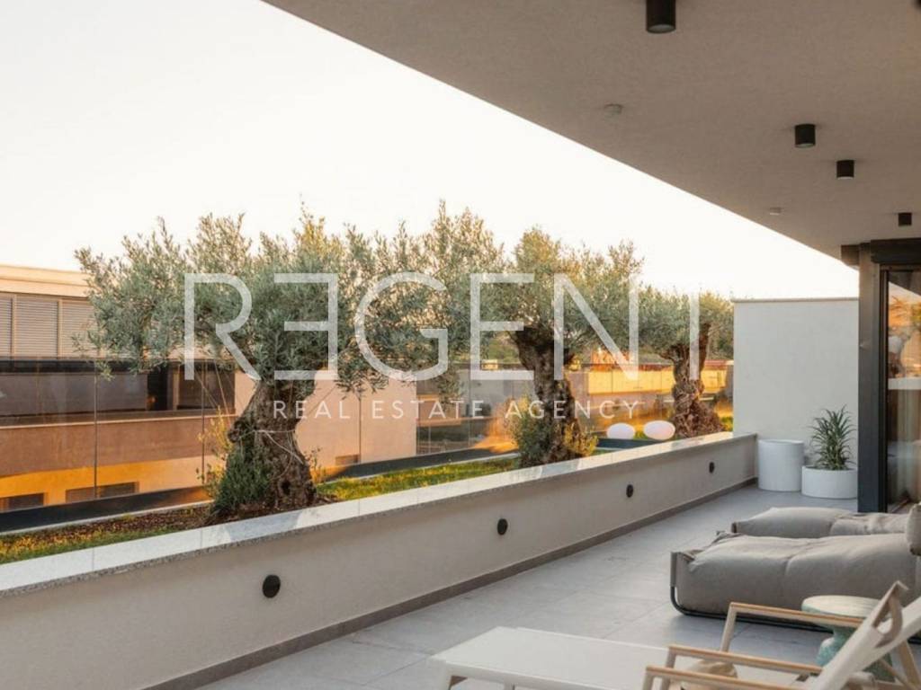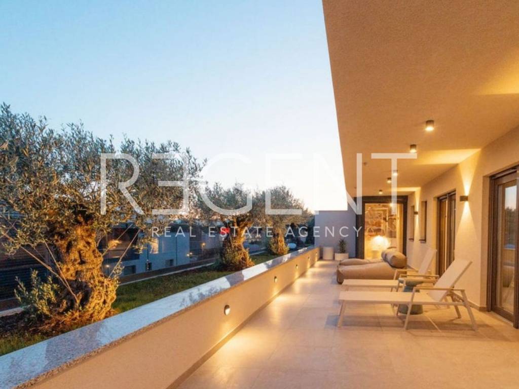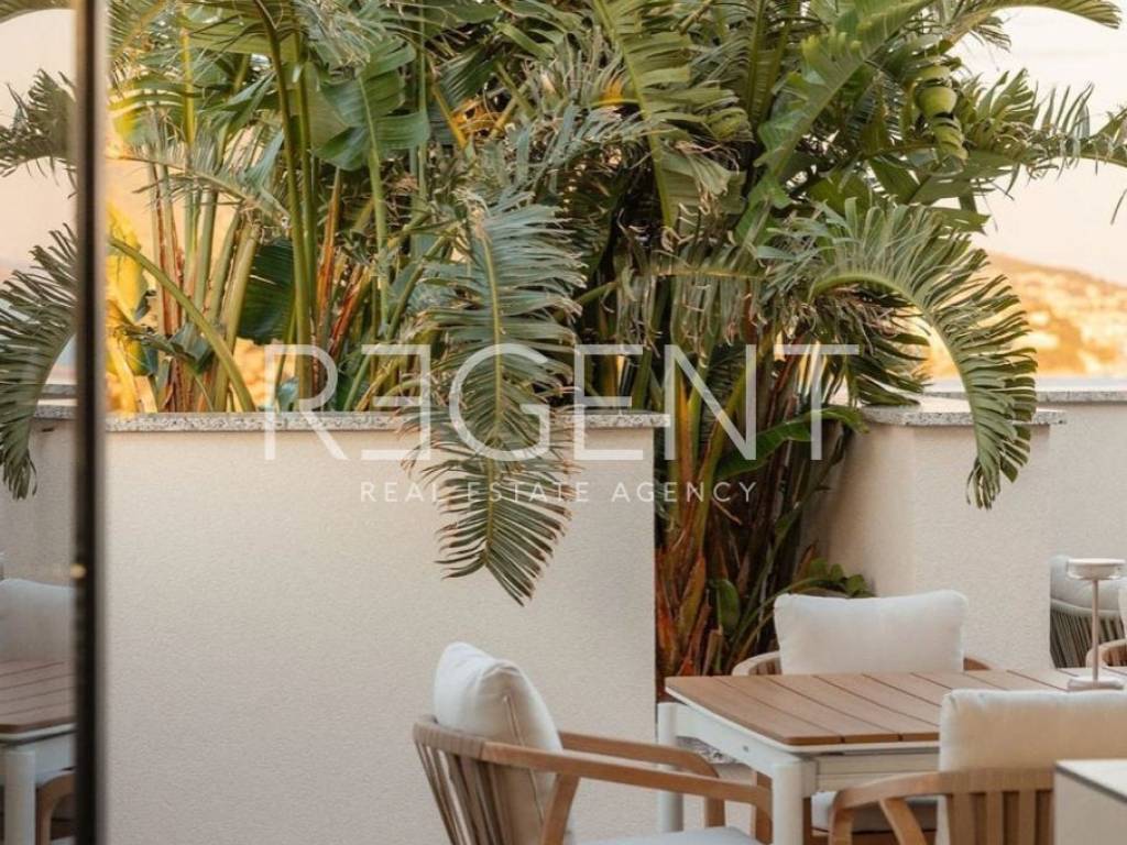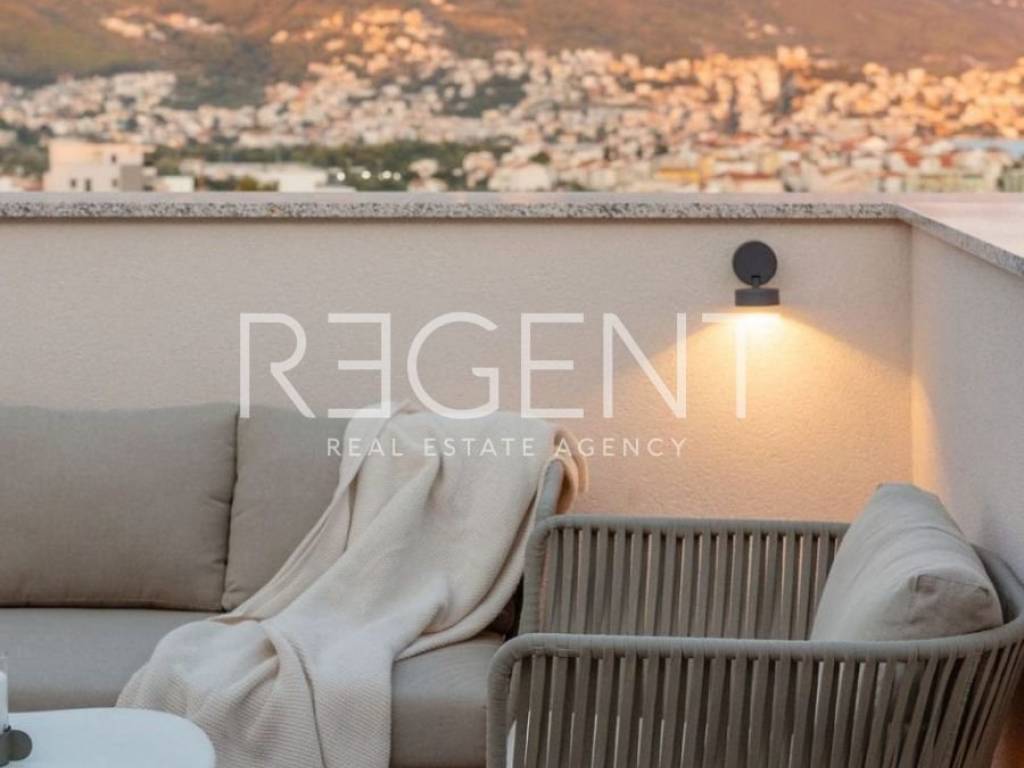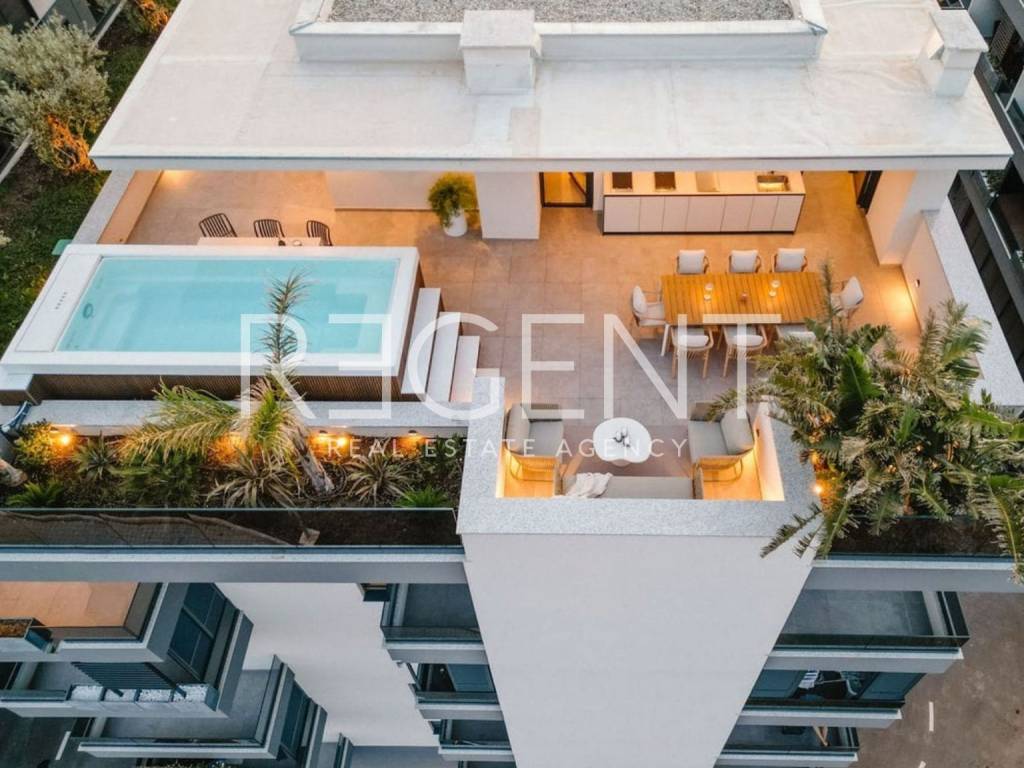In cima a un moderno edificio nella parte orientale di Spalato, si trova questo esclusivo attico con una superficie abitabile totale di 264,81 m², con 3 posti auto aggiuntivi. L'appartamento è completamente arredato e progettato, con giardini mediterranei e impressionanti aree esterne che consentono di soggiornare all'aperto tutto l'anno. L'appartamento è composto da un ampio soggiorno, cucina e sala da pranzo in un concetto open space, tre camere da letto matrimoniali, ognuna con il proprio bagno, una loggia chiusa aggiuntiva di 18,6 m² e terrazze coperte e non coperte per un totale di 97,39 m². Lo spazio esterno comprende una piscina riscaldata con bar, solarium, zona lounge, televisore esterno, nonché una cucina esterna professionale con elettrodomestici Barazza del programma nautico. Tutte le stanze sono climatizzate e l'appartamento è completamente riscaldato a pavimento, garantendo il massimo comfort anche in inverno. L'appartamento viene fornito con tre posti auto: uno esterno e due in un garage chiuso con accesso diretto tramite ascensore che conduce direttamente all'appartamento, garantendo privacy e comfort. La posizione dell'attico si trova nella parte orientale della città, ben collegata al centro con i mezzi pubblici. Nelle vicinanze ci sono fermate dell'autobus che portano direttamente al Palazzo di Diocleziano e al centro storico. Nelle immediate vicinanze si trovano tutti i servizi importanti: negozi, asili, scuole, spiagge, passeggiate, nonché centri commerciali come City Center One e Mall of Split. La vista dalla terrazza comprende il monte Kozjak, la fortezza di Klis, Mosor, il mitico Perun, Podstrana, Stobreč e il mare e l'isola di Brač - Supetar, Splitska e Postira. Questa proprietà è ideale per gli acquirenti che cercano una lussuosa vita cittadina in un nuovo edificio con servizi privati e arredi di alta qualità. È pronto per essere abitato immediatamente ed è disponibile per l'acquisto in contanti o tramite finanziamento. Per maggiori informazioni o per fissare un appuntamento per una visita, non esitate a contattarci!