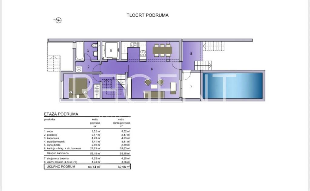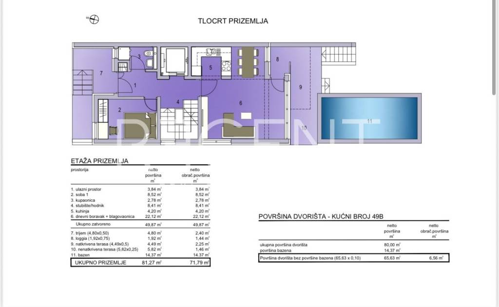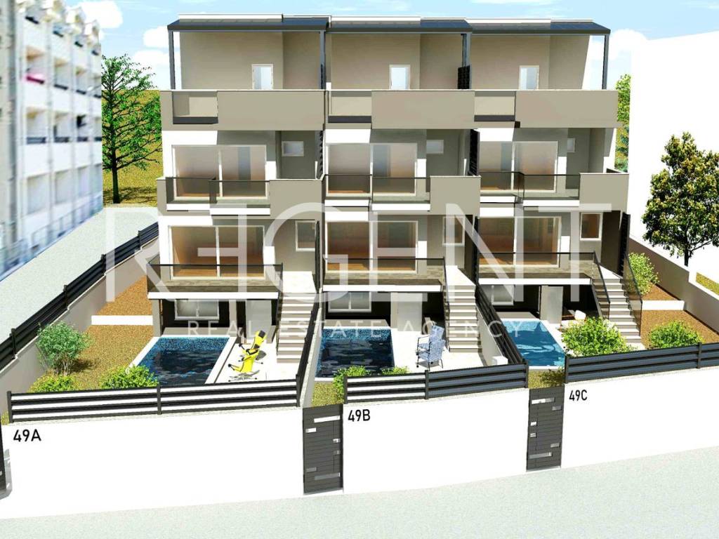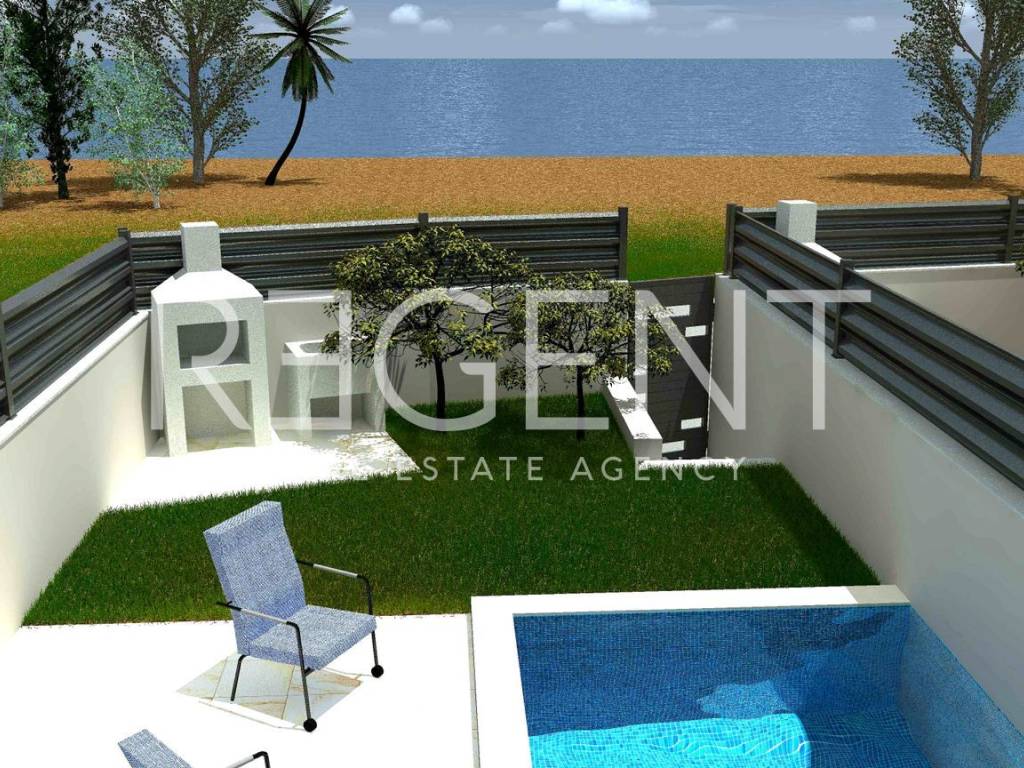 In una posizione tranquilla a Kaštel Štafilić, a soli 100 metri dal mare, si vende una villa a schiera con una superficie netta totale di 219 m² (lorda 333 m²) con cortile privato, piscina e ascensore per 8 persone che collega tutti i piani. L'edificio è progettato per offrire un elevato livello di comfort, privacy e funzionalità. La villa è composta da un seminterrato con locali di servizio e lavanderia, un piano terra con soggiorno, cucina, sala da pranzo e uscita sulla terrazza con piscina, un piano superiore con tre camere da letto, bagno e loggia e una spaziosa terrazza sul tetto con vista panoramica. Il cortile, con una superficie totale di 80 m², comprende una piscina di 14 m² e un'area relax attrezzata. Situata in un ambiente tranquillo, la villa si trova nelle immediate vicinanze del mare ed è ben collegata a Trogir, Spalato e all'aeroporto, mentre negozi, scuole e tutti i servizi necessari sono facilmente accessibili. La proprietà è attualmente in costruzione e il completamento è previsto entro 10-12 mesi. Questa villa rappresenta la scelta ideale per la vita familiare, le vacanze al mare o come investimento con un alto potenziale di ritorno attraverso l'affitto turistico.