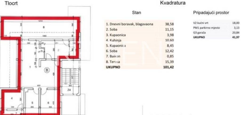 Vendesi splendido appartamento di superficie chiusa di 101,42 m² situato al piano terra di una moderna villa urbana all'interno di un complesso recintato a Gračani-Jazbina. Questo appartamento offre una perfetta combinazione di comfort, privacy e ambiente naturale e viene fornito con un proprio giardino, garage e ripostigli con una superficie totale di 19,7 m2. La superficie lorda dell'appartamento è di 120,69 m2. L'appartamento è composto da: 2 camere da letto 2 bagni un ampio soggiorno collegato alla sala da pranzo e alla cucina terrazza, balcone L'appartamento dispone anche di 2 posti auto in garage e di un bellissimo giardino. Attrezzature e vantaggi aggiuntivi: complesso recintato con ingresso controllato tramite rampa privacy e sicurezza garantite dei residenti palestra, sauna e sala giochi per bambini all'interno del complesso parcheggio esterno e cortile Posizione e collegamenti: 3 minuti di auto dalla funivia di Sljeme e dal centro commerciale Meridijan 16 15 minuti a piedi dalla fermata del tram ottimi collegamenti di trasporto: fermata dell'autobus a 50 metri Questa è la proprietà ideale per chi cerca un ambiente tranquillo ma ben collegato con servizi eccellenti. Per ulteriori informazioni e per concordare una visita, non esitate a contattarci.