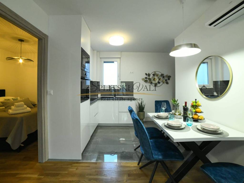 Posredujemo u najmu lijepog dvosobnog stana u zgradi Cesarica - predio Mejaši, Split. Stan se nalazi na drugoj etaži moderne stambene zgrade, a sastoji se od dvije spavaće sobe, kuhinje s blagovaonicom, dnevne sobe te kupatila.