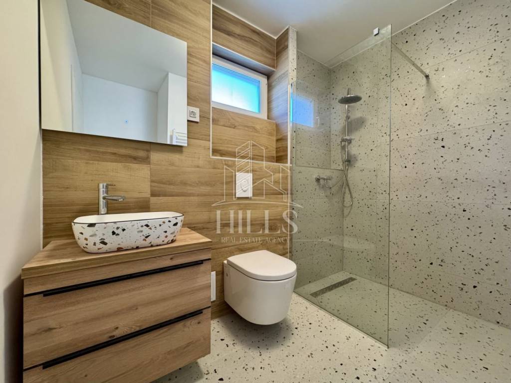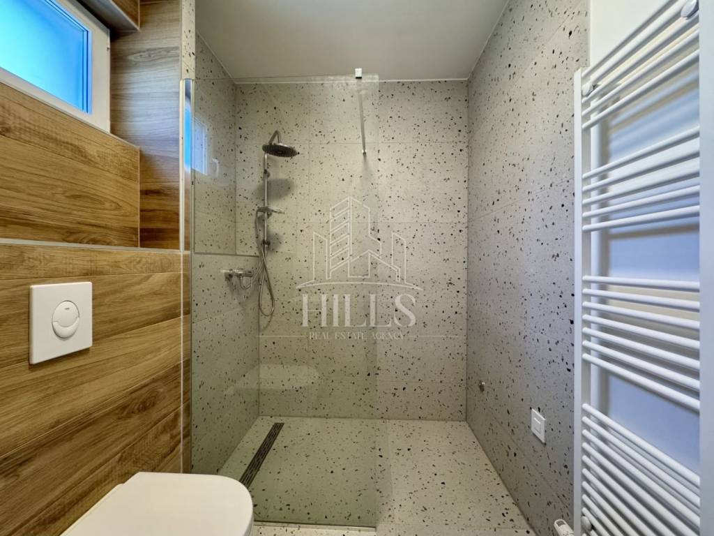Kupaonica sa walk-in tušem, konzolnom WC školjkom i sanitarijama renomiranih proizvođača (Geberit, Tece, Hansgrohe, Armal)