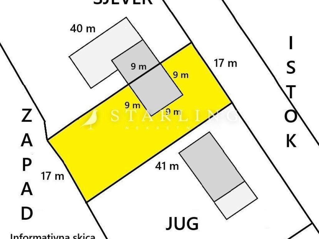 Prodaje se građevinsko zemljište površine cca 700 m2, na kojem se nalazi kuća u nizu (poluugrađena - zasebna) bruto tlocrtne površine cca 81 m2 (9 m x 9 m).