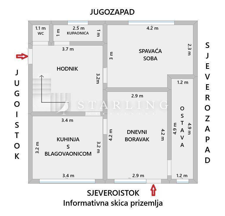 Kuća zahtjeva adaptaciju, no može se i rušiti jer je odvojena od od susjednog objekta zasebnim zidom.