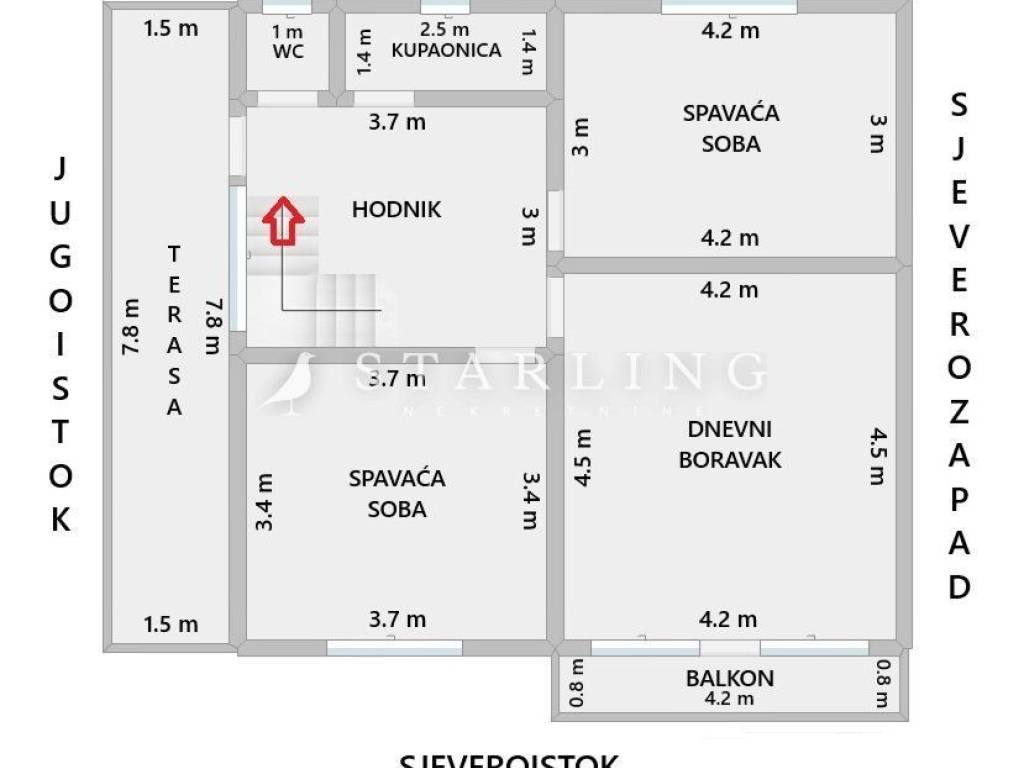 U ukupnu kvadraturu nije uračunat tavanski prostor tlocrtne površine cca 60 m2 (djelomični rohbau).