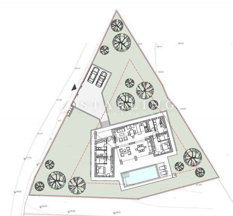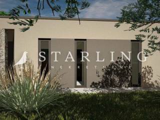 Na prodaju je građevinsko zemljište koje dolazi s izrađenim idejnim projektom za modernu kuću mediteranskog stila.