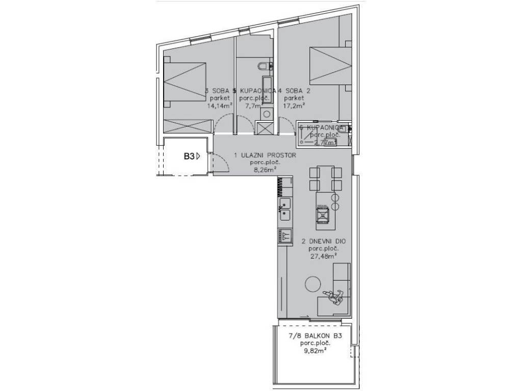 A spacious apartment is for sale in a newly built building, located in an attractive location that provides an open view of the sea. The apartment occupies a total living area of 75m2. It consists of two large bedrooms, a bathroom, a toilet and an open-concept living room, with a combined living room, kitchen and dining room, which has access to a covered terrace. The apartment comes with a storage room and one garage space. All apartments in the building have anti-slip ceramic floors, underfloor heating throughout (except under the furniture) and waterproofed sanitary facilities. Heating and cooling are provided by a modern multi-split air conditioning system, the ventilation of the sanitary facilities is mechanical, and installations for kitchen hoods and electric awnings have been prepared. The building has an elevator, double waterproofed terraces with glass railings, a roof with thermal insulation and high-quality rainwater drainage. This apartment is a great investment, whether it is an investment in tourism or a unit for a carefree family vacation.