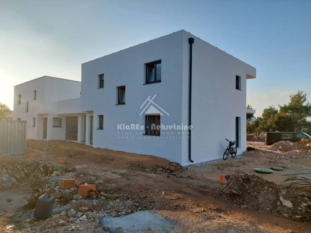 Two semi-detached houses with a garage and a swimming pool are for sale in Vodice. This is a new building, located about 850 meters from the sea, or the city center. The building is in the final phase of construction and now the interior and exterior decoration of the house are underway. A final building permit has been issued for this semi-detached property, and the project is expected to be completed and the house is ready for occupancy by spring 2026. High-quality materials and equipment are used in the construction and decoration, and it is worth highlighting: underfloor heating in the kitchen and living room, electric roller shutters, air conditioning in the living room and all rooms, etc. The position of the property provides access to all relevant amenities. Payment dynamics in agreement with the investor. The offer includes: