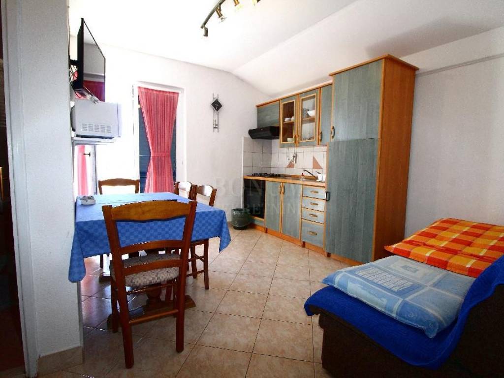 House with eight apartments for sale In Tribunj near the sea and all amenities. The house consists of a basement, ground floor, first and second floors. On the ground floor is a one bedroom apartment consisting of a living room with kitchen and dining area, which is connected to a beautifully landscaped terrace, bathroom and one bedroom. On the other side there is another two bedroom apartment, living room, kitchen, dining room, bathroom and terrace.