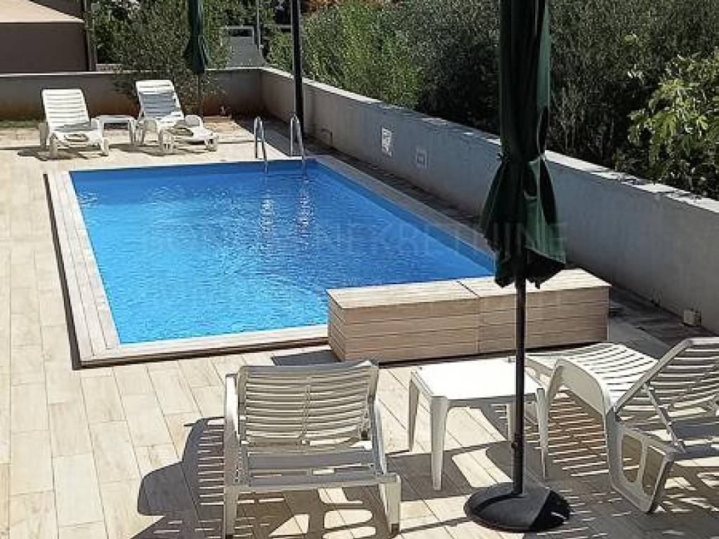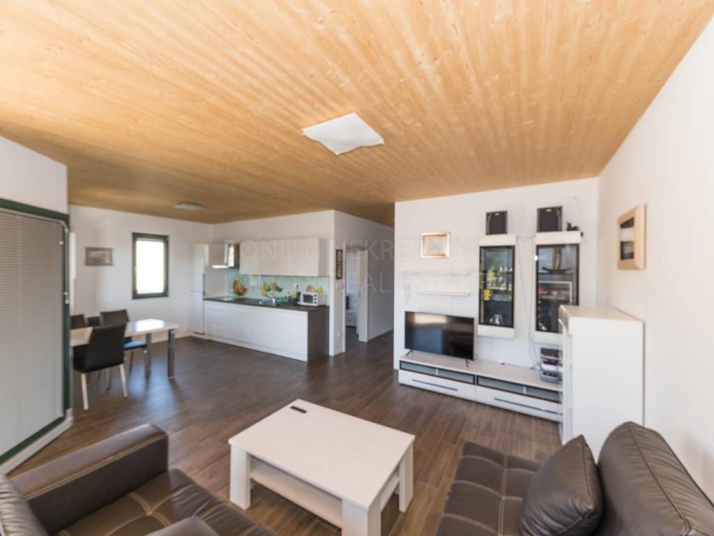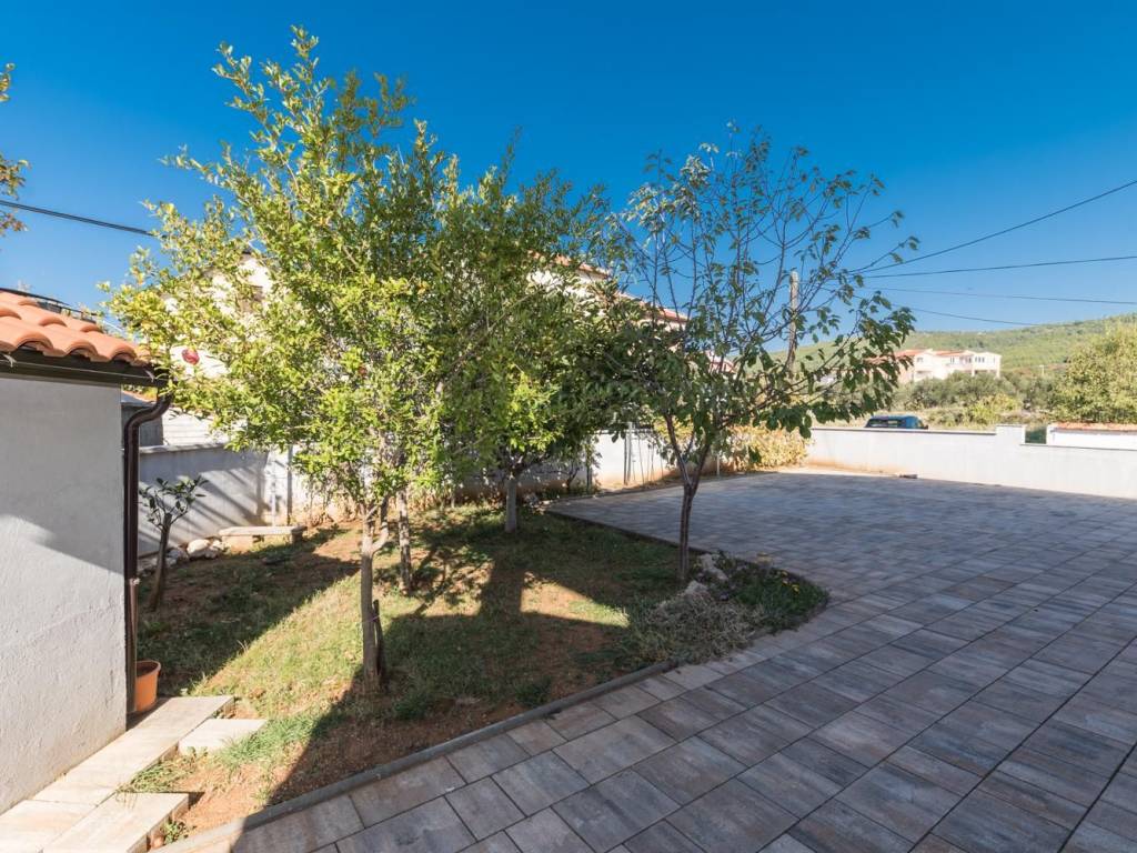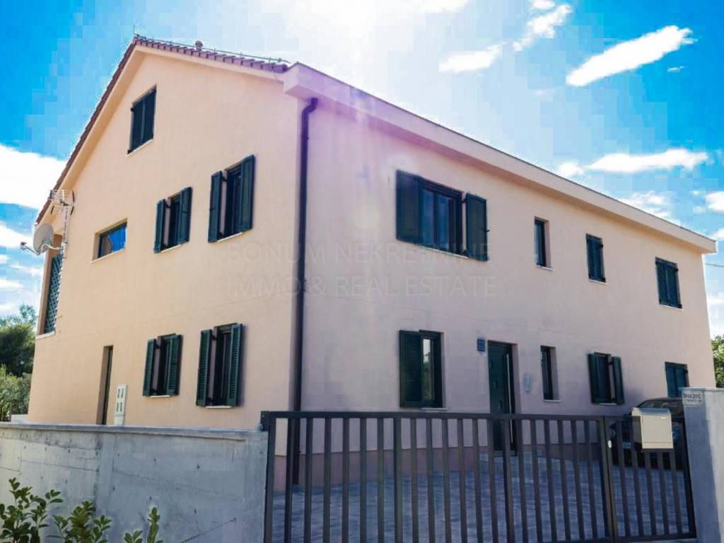 A beautiful apartment house with a swimming pool for sale in Tribunj. The house is located in a quiet location, near the beautiful beach and newly renovated promenade. It consists of a basement, ground floor, first floor and attic. On the ground floor and on the first floor there are two decorated and furnished apartments (one has one while the other has two bedrooms). All four apartments provide comfort and are suitable for staying all year round. The basement has 46.40 m2 while the attic is unfinished and has 186.77 m2 or 80.30 m2 (due to height coefficients). The attic offers a variety of remodeling options. The house is well built, has an A energy certificate. In front of the house is a swimming pool (8 * 3.5 m2) with a sun deck, while in the back is a large parking lot. Excellent property, ideal for year-round stay or for tourist rental.