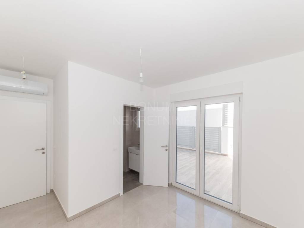 Apartment for sale in a new, modern building, Čiovo. The building is located in a quiet location, and is close to the beach. It is only 150 m from the sea. It is perfectly positioned, and it is only a 5-minute walk to the store, the beach or the bus station. You only have a 10-minute walk to the old bridge and a 10-minute drive to the airport. It is south-facing and has a beautiful view of the bay, the sea and the island of Šolta.