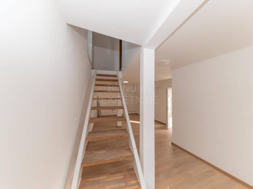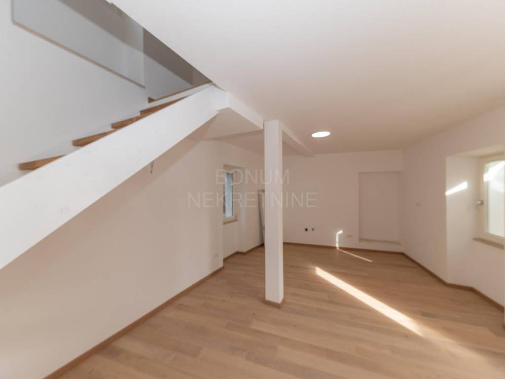 The property with a total net area of 122 m² is spread over three floors, and it also has a garden of 21 m². The house contains two separate and fully functional residential units, which makes it ideal for a larger family, two generations or as an investment for tourist rental. On the ground floor there is the first apartment with an enclosed area of 37 m², which also has a covered terrace of 12.5 m², perfect for relaxing in the shade. On the first and second floors there is a duplex apartment with a total area of 64 m² with a terrace of 8.8 m², which offers a sea view.