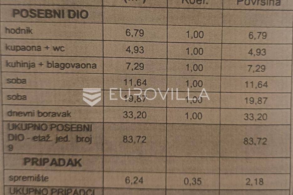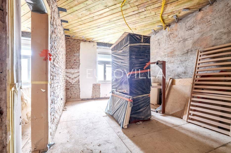 Prodaje se trosoban stan smješten na 2. katu zgrade koja je trenutno u fazi obnove (završetak radova predviđen je 1. ožujka 2026.).Sastoji se od:ulaznog hodnika 6,79 m2dvije spavaće sobe 11,64m2 i 19,87 m2dnevnog boravka 33,20 m2kuhinje s blagovaonicom 7,29 m2kupaonica i WC 4,93 m2spremišta u podrumu površine 6,24 m²U cijenu je uključena i garaža površine15-20 m² (vanknjižno vlasništvo) te jedno parkirno mjesto u dvorištu.Ostale informacije na upit.