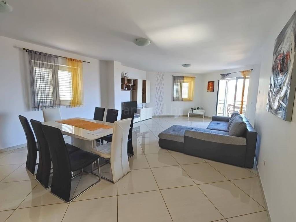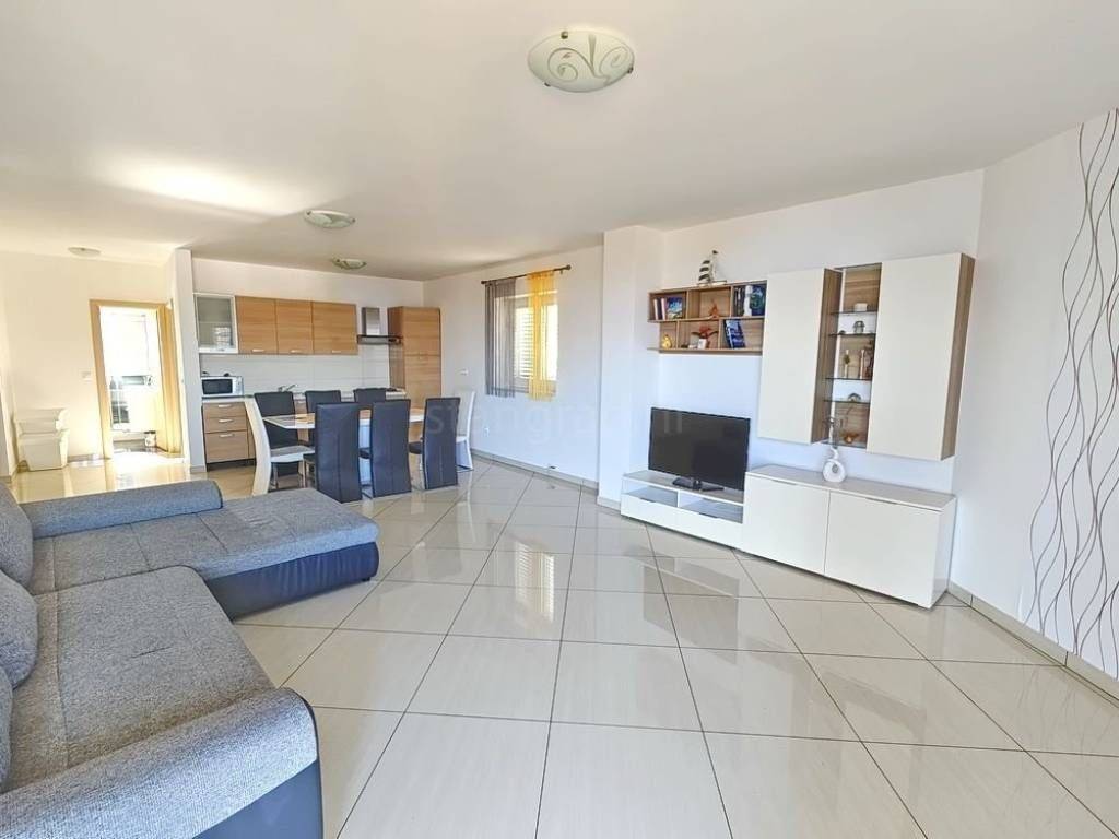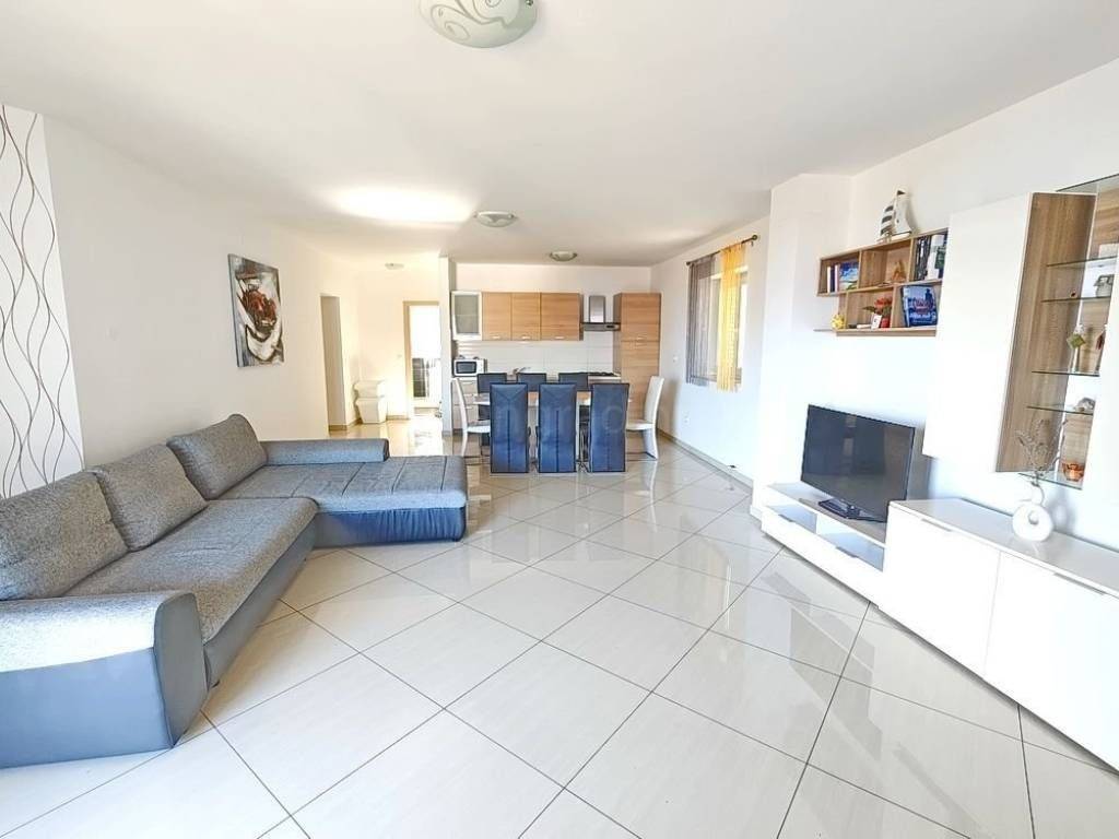Si tratta di un appartamento molto spazioso e confortevole, disposto su un unico livello, situato al primo piano di un edificio ben costruito. La superficie totale è di 98 m². L’appartamento è composto da ingresso, soggiorno con cucina e zona pranzo, due camere da letto, bagno, balcone e terrazza coperta. L’immobile è completamente arredato con mobili moderni e dotato di attrezzature tecniche contemporanee e di alta qualità.