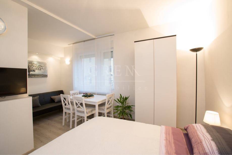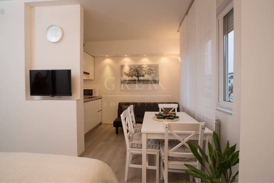 Stan je funkcionalno organiziran i potpuno namješten, smješten na praktičnoj lokaciji u blizini okretišta Črnomerec, što osigurava odličnu prometnu povezanost i jednostavan pristup gradskim sadržajima. Tramvajska stanica udaljena je oko 100 metara, što omogućuje vrlo brzo kretanje prema središtu grada i drugim dijelovima Zagreba.