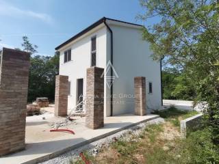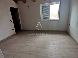€ 275.000Terratetto unifamiliare 115 m², VisignanoSituata ai margini di un piccolo e tranquillo villaggio vicino a Višnjan, questa casa indipendente coniuga serenità e funzionalità. Circondata da rigogliosi prati e alberi, la proprietà offre un rifugio ideale con comfort moderni e un ampio spazio esterno. Il piano terra comprende un accogliente ingresso, una cucina, un soggiorno confortevole, un bagno e una terrazza perfetta per rilassarsi o ospitare amici e familiari. Al primo piano si trovano due spaziose camere da letto, ognuna con il proprio bagno privato, garantendo privacy e comodità. L’area esterna è un vero punto di forza, con un am
