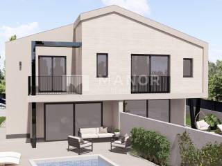 od € 885.000Novogradnja Stanovi u Malinska-DubašnicaDvojna Kuća s Vrtom, Malinska, Otok Krk – 122 m², 5 Minuta do Mora! Na prodaju je dvojna kuća površine 122 m², raspoređena na prizemlje i kat. U prizemlju se nalaze: ulaz, kupaonica, spavaća soba, hodnik, spremište, dnevni boravak, kuhinja s blagovaonicom i izlaz na terasu s vrtom i bazenom. Unutarnje stepenice vode na kat gdje su smještene tri spavaće sobe, dvije kupaonice i balkon. Kuća je u potpunosti namještena kvalitetnim, luksuznim namještajem rađenim po mjeri. Pripadaju joj dva natkrivena parkirna mjesta, a na okućnici površine 172 m² nalazi se uređeni kamin te je moguće parkirati jo