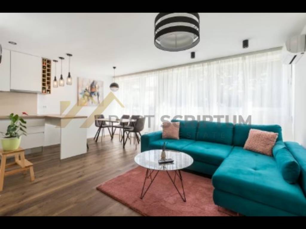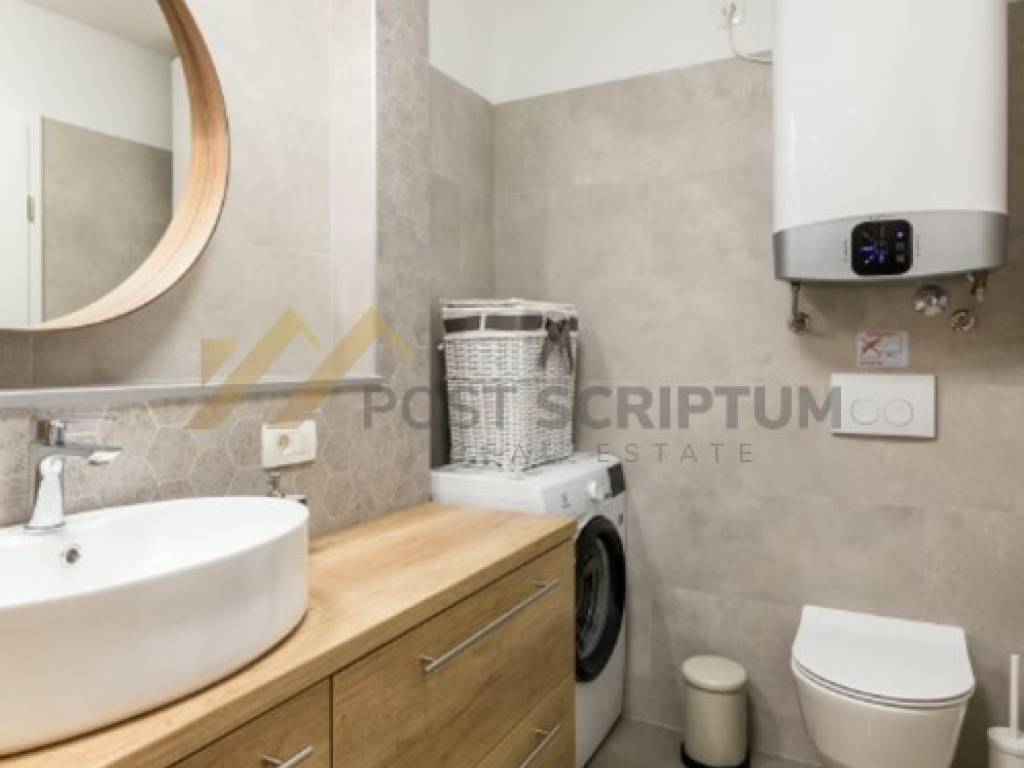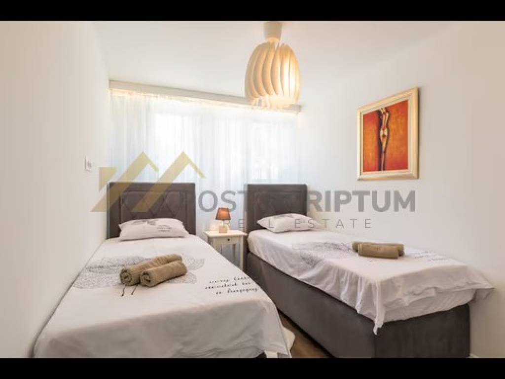 Klimatiziran, opremljen svim namještajem i uređajima (klima uređaj, perilica rublja).
