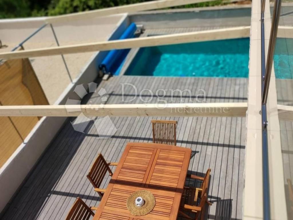 Poštovani klijenti, na otoku VIR-u, udaljena samo 100m od mora, predivna novogradnja s bazenom čeka na novog vlasnika! Velika, otvorena terasa, na koju se nadovezuje bazen, nalazi se idiličan prostor za druženje i provođenje nezaboravnih ljetnih dana.. Smještena kao zadnja u nizu, ova kuća gravitira na more i šumarak i pruža vam potpunu privatnost i intimu. Koncept kuće je sljedeći: - u prizemlju je soba za goste sa kupaonicom, kuhinja, blagovaonica i dnevni boravak sa izlazom na terasu i bazen - na katu se nalaze 3 spavaće sobe sa kupaonicom, 2 terase od kojih je jedna sa panoramskim pogledom na more, bazen i dvorište, a druga na šumicu Kuća je završena ove godine, opremljena je klimama na obje etaže te je u potpunosti opremljena (osim open space sobe na katu). Spektakularan bazen i okolina čine ovu nekretninu poželjnu za obitelj i starije osobe, obzirom da pruža sav potreban komoditet svojim sadržajem u prizemlju. Slobodno mi se obratite sa mogućim pitanjima, na broj +385 (0)95 355 4664 ili putem elektronske pošte na: boris.humski@dogma-nekretnine.com Veselim se vašeg poziva! Srdačno, Boris Humski, MSc, MBA agent s licencom ID KOD AGENCIJE: DA100062977 Boris Humski Agent s licencom Mob: 095/355-4664 Tel: 051/271-365 E-mail: boris.humski@dogma-nekretnine.com www.dogma-opatija.com