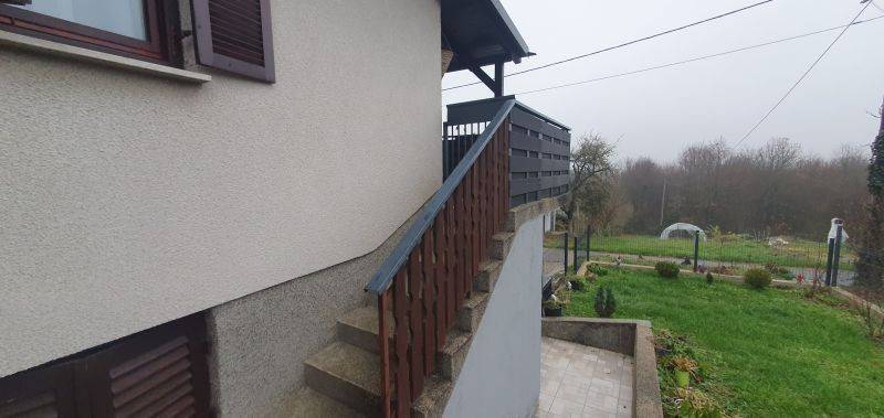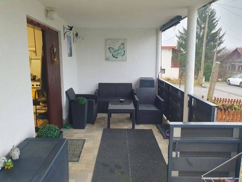 Kuća: Stančić, Klanjčić, 70m2, 2 etaže, ukupno 1243m2, uredjena, 79000 €Kuća (u rješenju o izvedenom stanju - klijet) nalazi se u ulici Klanjčić mjesto Stančić, općina Brckovljani u blizini Dugog Sela udaljenosti oko 40 minuta autom od Zagreba.Samostojeća kuća  izgradjena je 2000 - tih godina, a naknadno je uređena 2021. godine.Sastoji se od dvije odvojene etaže (garsonjere ) svaka oko 35 m2.Stan u prizemlju sastoji se od ulazne natkrivene verande sa vanjskom garniturom, sobe sa kuhinjom i odvojenim djelom za ormar te veš mašinu te vanjskog wc-a.Vanjskim stepeništem penje se na kat koji se sastoji od ulazne natnakrivene verande, sobe/dnevnog boravka, manje kuhinjice i mini kupaone sa tuš kabinom i wc-om.U dvorištu kuće se nalazi vrtna kućica/alatnica, a u produžetku je livada.Parcela je pravilnog oblika, na blagom brdašcu.Kuća je u dobrom stanju. Grijanje plinsko etažno. Gradski vodovod. Septička jama. Vlasništvo uredno 1/1, rješenje o izvedenom stanju, tereta nema.Autobusno stajalište do Borongaja - stanica na 10 min. pješice.Moguća zamjena za manji stan ili garsonjeru na području Sesveta ili Zagreba u blizini javnog prijevoza.
