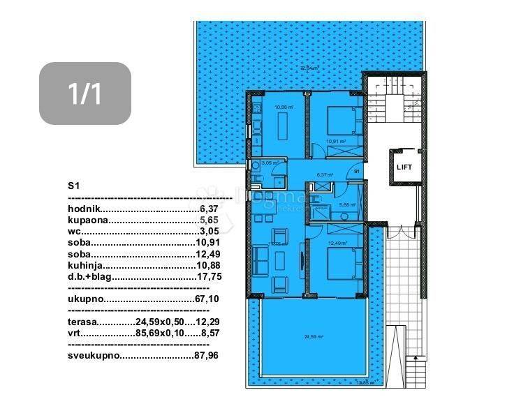 Prodaje se stan u Makarskoj (Veliko Brdo) u novogradnji – odlična prilika! Na prodaju je stan S1Z u zgradi s ukupno 6 stanova, na 3. katu od 3. Stan je površine zatvorenog dijela 67,10 m² i sastoji se od : - prostrane dnevne sobe s blagovaonicom - kuhinjom, - hodnika, - dvije spavaće sobe, - WC-a, -kupaonicom, te otvorenog dijela 110,28m2 koji se sastoji od: -terase i vrta Što ispada total od NETTO 87,96m2 Garažno parkirno mjesto je 18.000 € Vanjsko parkirno mjesto je 10.000 € Lokacija je izvanredna, u neposrednoj blizini kafića i trgovine što čini svakodnevni život ugodnijim. Blizina mora (1000 m) omogućuje lagan pristup plažama i rekreativnim aktivnostima. Stanovi su projektirani s pažnjom na kvalitetu gradnje i moderan dizajn što ih čini pogodnima za različite profile kupaca – obitelji, parove ili investitore koji traže isplative opcije u turistički atraktivnoj zoni. Posebno se obraćala pažnja na velike otvore i prostrane dnevne prostore s udobnim sobama i modernim kupaonicama. Cijena stana varira između 2.500 €/m² i 3.400 €/m², ovisno o vrsti stana i načinu financiranja. Uz ovaj stan, dostupne su i druge stambene jedinice koje mogu zadovoljiti različite ukuse i potrebe. Za više informacija ili dogovor o razgledu, slobodno nas kontaktirajte: +38595 855 8408 leon.luzija@dogma-nekretnine.com Leon Lužija Andrijašević Licencirani agent Ne propustite priliku da postanete vlasnik jednog od ovih izvrsnih stanova u novogradnji! ID KOD AGENCIJE: ST2923 Leon Lužija Andrijašević Agent s licencom Mob: 095/855-8408 Tel: 01/647-3011 E-mail: leon.luzija@dogma-nekretnine.com www.dogma-zagreb.com