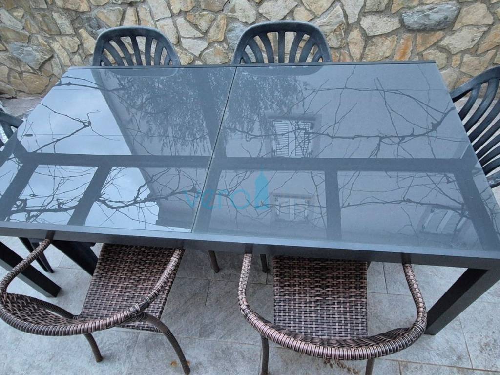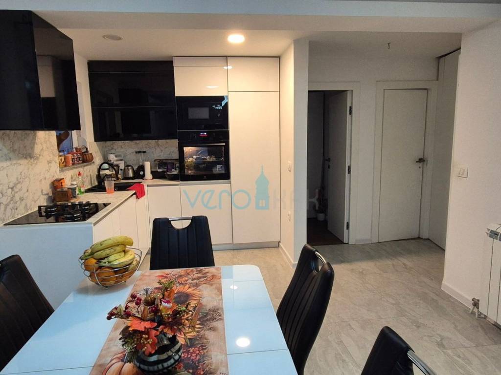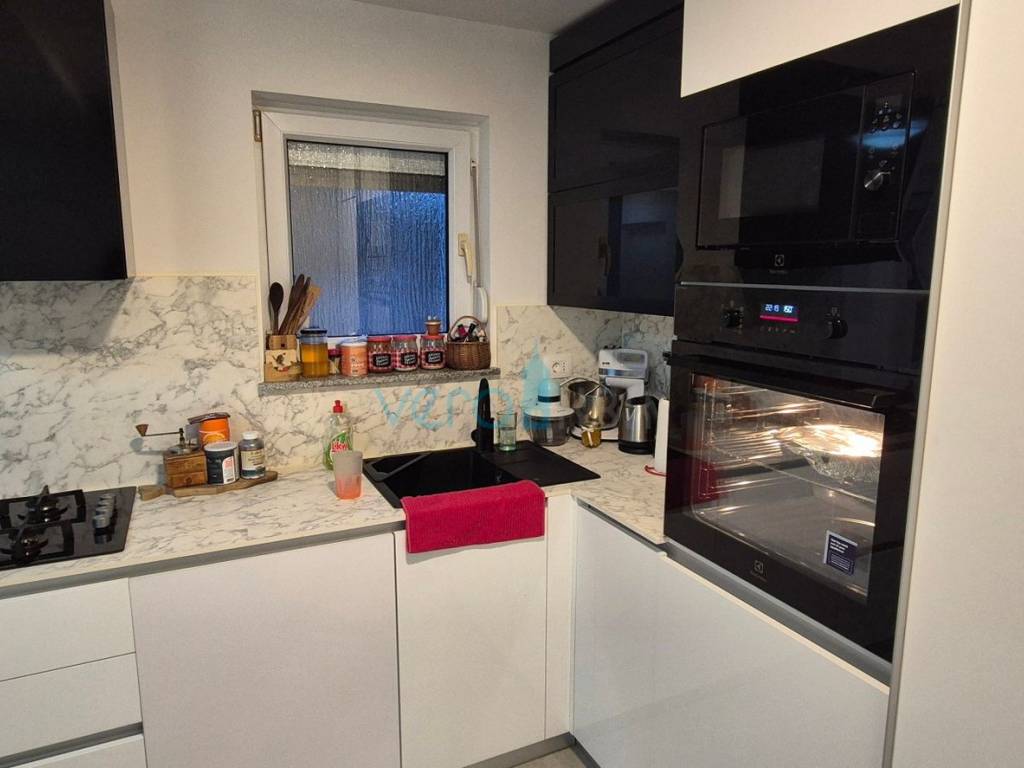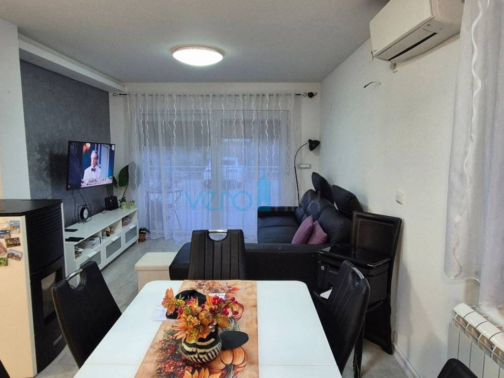 Stan od 61 m2 se nalazi u prizemlju višestambene zgrade od 6 apartmana. Sastoji se od hodnika, dnevnog boravka sa kuhinjom i blagovaonom, dvije spavaće sobe, kupaonice te terase. Stanu pripada uređena okućnica sa zidanim kaminom od 68 m2, dio pristupnog puta te natkriveno parkirno mjesto 12 m2.