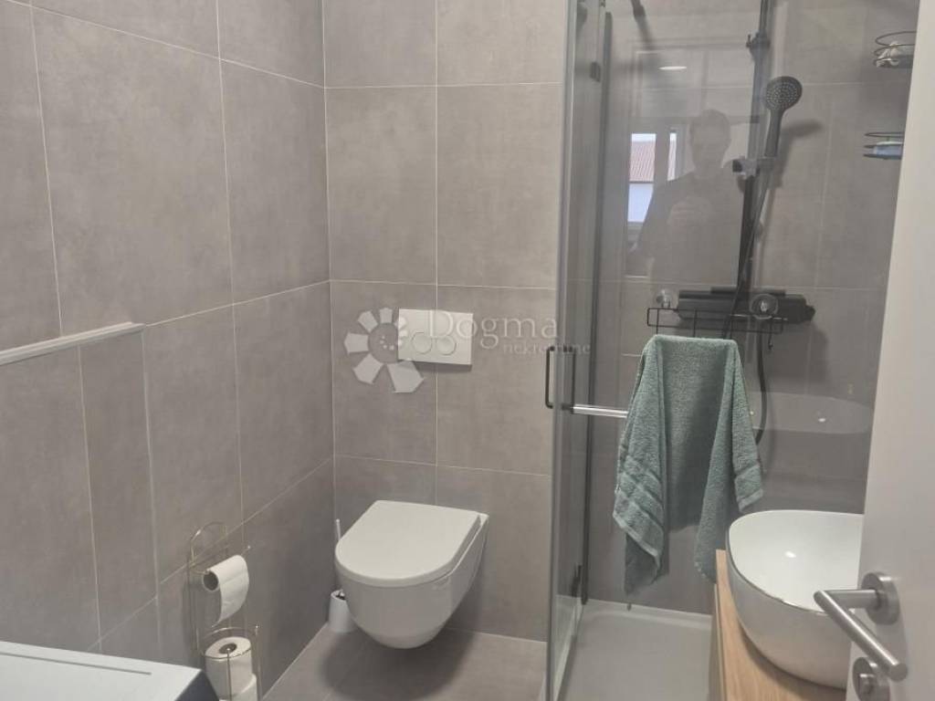Prodaje se dvosoban stan neto površine 61,72 m2 smješten na drugom katu zgrade izgrađene 2022. godine na mirnoj lokaciji svega 250 metara do mora. Stan se sastoji od hodnika (8.08m2), kupaonice (4.46m2), kuhinje s blagavaonicom (18.41m2), dnevnog boravka (6.82m2), dvije spavaće sobe (10,08 m2 i 10,83 m2) i ostave (3,04 m2). Iz dnevnog boravka se izlazi na terasu površine 9,43 m2 s koje se pruža pogled na more. Zgrada je napravljena kvalitetno i modernog je izgleda. Stan ima PVC stolariju antracit boje s trostrukim brtvama i troslojnim staklom, što daje toplinsku, zvučnu izolaciju i niže troškove režija. Stan ima aluminijske rolete, komarice, protupožarna i protuprovalna ulazna vrata, električno podno grijanje u kupaonici i klima uređaje u svakoj sobi. Podovi u dnevnom boravku, blagovaonici i spavaćim sobama su od visokokvalitetnog hrastovog parketa. Stan je u potpunosti namješten i odmah useljiv. Stanu pripada i dva vanjska parkirna mjesta. Siniša Klem Dogma nekretnine 095 399 4450 ID KOD AGENCIJE: DA100064137 Siniša Klem Asistent u posredovanju Mob: 095/399-4450 Tel: 022/646-360, 022/646-361 E-mail: sinisa.klem@dogma-nekretnine.com www.dogma-dalmacija.com