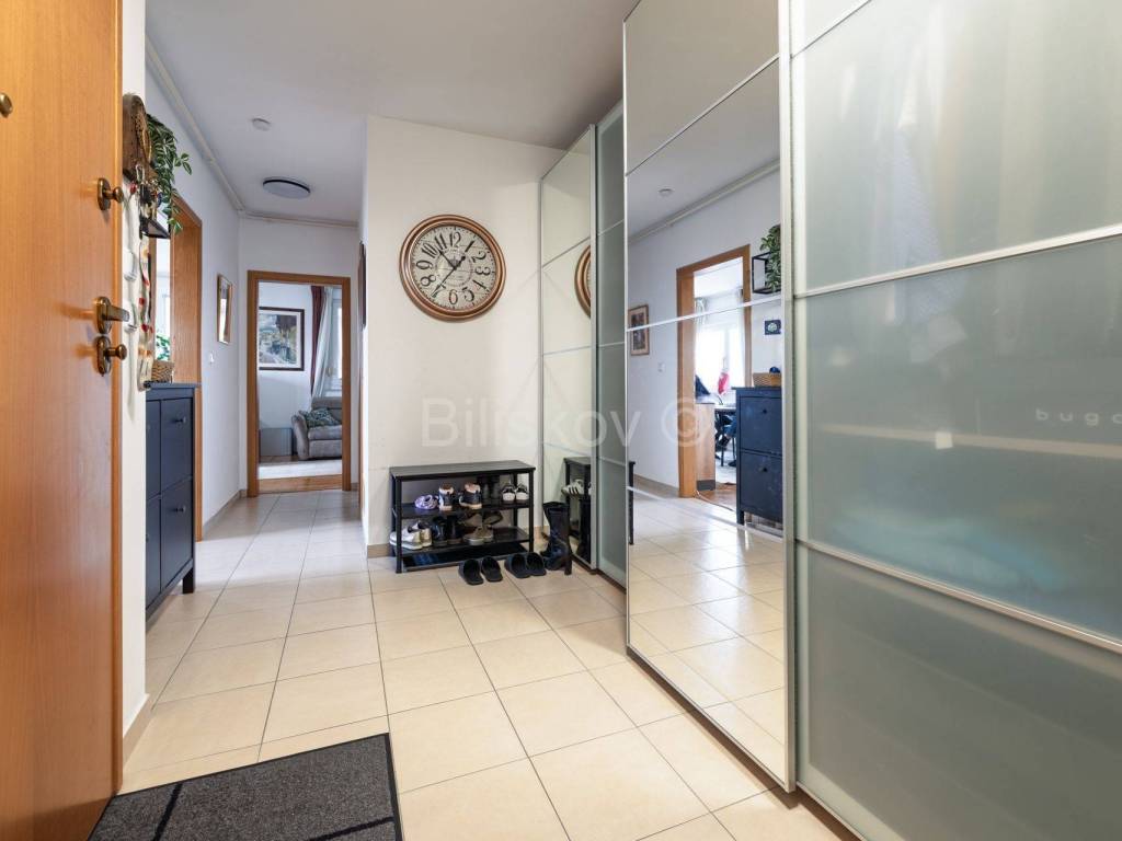 Stan se sastoji od dnevnog boravka integriranog sa blagovaonicom i kuhinjom, te izlazom u još jednu veliku sobu koja je dobivena zatvaranjem terase, tri spavaće sobe, još jedne zatvorene terase, dva hodnika. dvije kupaonice sa WC-om i ostave.