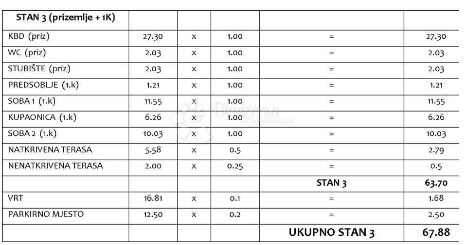 Za sve dodatne informacije i razgledavanje kontaktirajte me na broj: +385919077396 ili mail vedrana.basic@dogma-nekretnine.com. *** SV. PETAR NA MORU - S3 DVOETAŽNI STAN U PRIZEMLJU S VRTOM *** Zgrada se sastoji od devet stambenih jedinica. Nalazi se samo 250 metara od mora i plaže. Stan S3 je dvoetažni stan nalazi se dijelom u prizemlju i dijelom na 1. katu zgrade, sastoji se od: KBD 27.30 m² WC 2.03 m² Stubište 2.03 m² Predsoblje 1.21 m² Soba 1 11.55 m² Kupaonica 6.26 m² Soba 2 10.03 m² Natkrivena terasa 5.58 m² Nenatkrivena terasa 2.00 m² Vrt 16.81 m² Parkirno mjesto 12.50 m² Unutarnji stambeni prostor je površine 60,41m2, stanu pripada vrt površine 16,81m2 te jedno parkirno mjesto. Ukupna netto prodajna kvadratura 67,88m2. Zgrada se gradi po svim modernim standardima gradnje, od opreme valja naglasiti: - LIFT - PVC stolarija s troslojnim staklima i električnim aluminijskim roletama, komarnici - izolacija10 cm stiropora - električno podno grijanje u kupaonici - grijanje i hlađenje putem klima uređaja u svakoj prostoriji - portafon - podne obloge: parket u svim prostorijama osim kupaonica i toaleta gdje će biti pločice - krovna terasa će imati priključke za struju i vodu Očekivani dovršetak radova kraj 2026. Financiranje dostupno za građane EU. Agencija broj jedan u Hrvatskoj već 25 godina. VEDRANA BAŠIĆ +385919077396 vedrana.basic@dogma-nekretnine.com ID KOD AGENCIJE: DA100064211 Vedrana Bašić Asistent u posredovanju Mob: 091/907-7396 Tel: 023/551-400 E-mail: vedrana.basic@dogma-nekretnine.com www.dogma-nekretnine.com