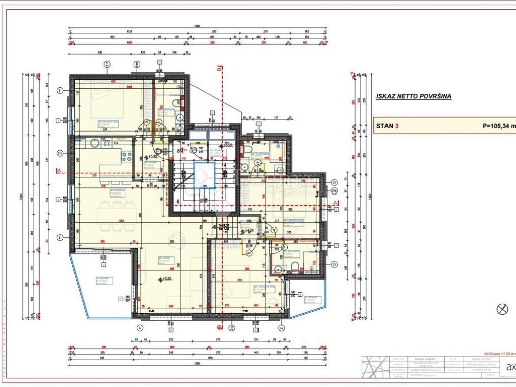 Prodaje se trosoban stan S3 neto površine 105.34 m2 na 2 katu zgrade koji je u potpunosti završen i odmah useljiv sa predivnim pogledom na more i otoke. Stan neto površine 105.34 m2 sastoji se od: predsoblja, kuhinje, dnevnog boravka i blagovaonice, tri spavaće sobe, dvije kupaonice i  dvije terase. Stanu pripada jedno parkirno mjesto. Ukupna površina stana sa izračunatim koeficijentima za terase i 1 parkirno mjesto je 114.74 m2.  Okoliš zgrade je uređen travnjacima i hortikulturom. Zgrada je smješten na atraktivnoj i mirnoj lokaciji u blizini mora i plaže pogodno za ugodan život ili ljetovanje.  Brodarica se nalazi 5 minuta vožnje do centra grada Šibenika, a do najpoznatije plaže Rezalište 1 minute voženje. Do mora se može doći pješice putem pothodnika, bez prelaska magistrale, u samo nekoliko minuta. Zgrada ima ukupno 2 apartmana i 3 stana. Svi potrebni sadržaji (trgovine, banka, vrtić, škola i sl.) nalaze se nekoliko minuta vožnje.  Siniša Klem Dogma nekretnine 095 399 44 50   ID KOD AGENCIJE: DA100064263  Siniša Klem Asistent u posredovanju Mob: 095/399-4450 Tel: 022/646-360, 022/646-361 E-mail: sinisa.klem@dogma-nekretnine.com www.dogma-dalmacija.com