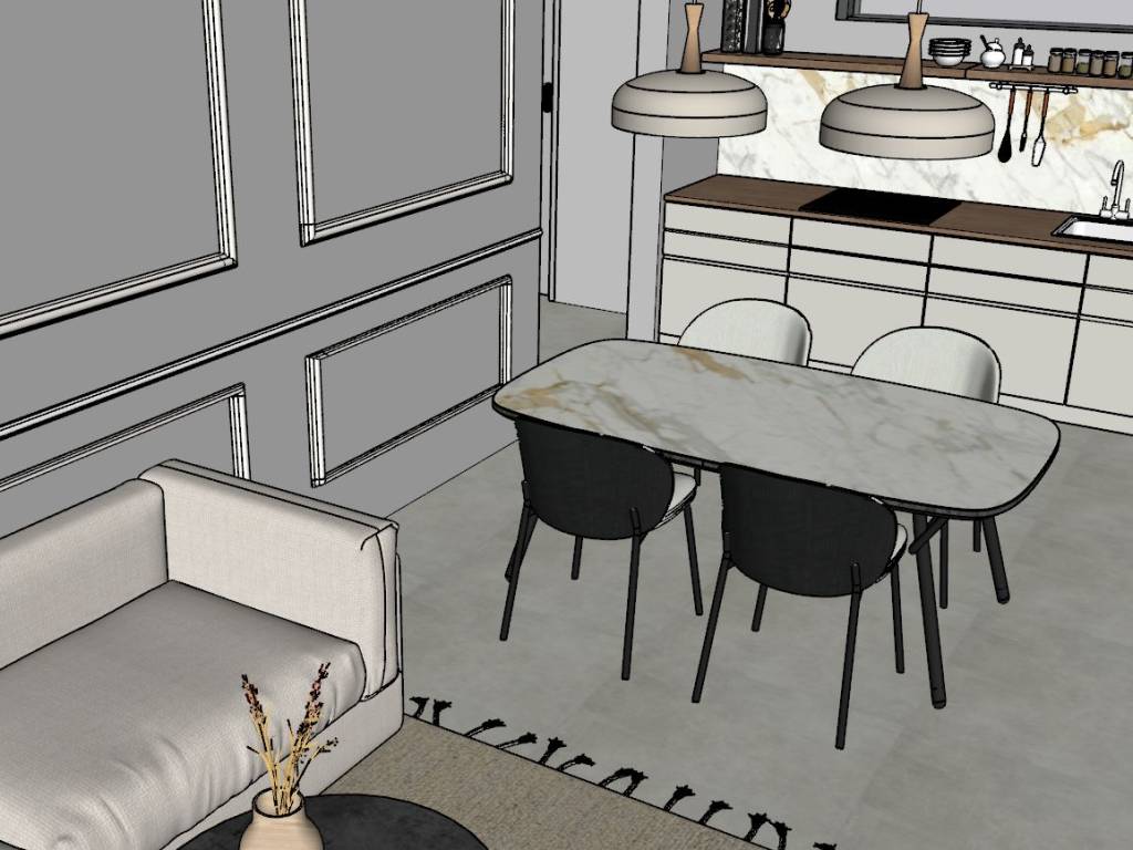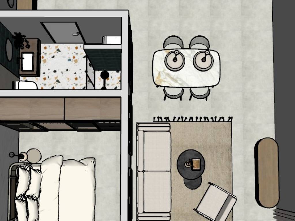 Sastoji se od “open space” dnevnog boravka s kuhinjom i blagovaonicom, izlazom na terasu, 2 spavaće sobe, 1