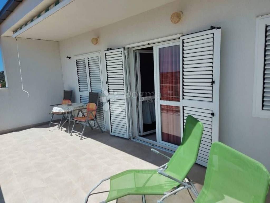 JEDINSTVENA PRILIKA! PREKRASNA KUĆA 150m OD MORA!  Posredujemo pri prodaji samostojeće katnice (90 m2) u Sevidu, na prelijepoj lokaciji, svega 150 m od mora, sa otvorenim pogled na obližnje otoke i uvale.   Kuća se sastoji od prizemlja i prvog kata i nalazi se na parceli veličine 350 m2.  U prizemlju su garaža (19,26 m2), gustirna (11.06 m2), spremište 1 (10,63 m2) i spremište 2 (10,28 m2).  Na katu se nalaze dvije spavaće sobe (8,36 m2 i 8,59 m2), kuhinja sa dnevnim boravkom i blagovaonicom (24,36 m2), kupatilo (4,53 m2), veliki balkon (19,42 m2) i terasa (11,83 m2).  Također postoji mogućnost da se prizemlje pretvori u dodatni apartman. Pored garaže je još jedno parking mjesto. Kuća je klimatizovana.  Fasada i balkon potpuno renovirani 2018., te sobe 2020. Cijevi kroz cijelu kuću su obnovljene 2021. Vlasništvo je uredno 1/1.  Za više informacija i organizaciju posjeta, slobodno me kontaktirajte.  Ilija Računica +385 91 4957 567 ilija.racunica@dogma-nekretnine.com  ID KOD AGENCIJE: ST3396  Ilija Računica Asistent u posredovanju Mob: 091/495-7567 Tel: 022/646-360, 022/646-361 E-mail: ilija.racunica@dogma-nekretnine.com www.dogma-dalmacija.com