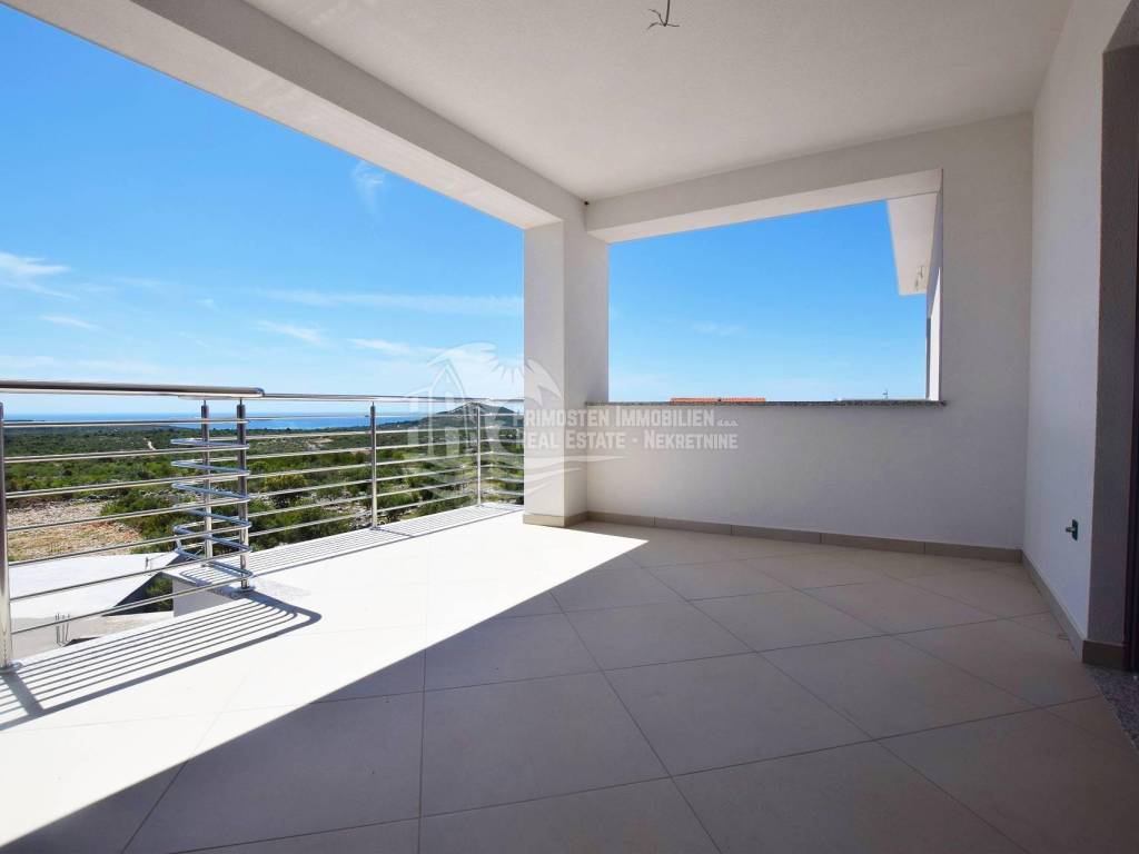 Moderni, dobro osvijetljeni trosobni stan, okrenut prema južnoj strani, nalazi se u stambenoj troetažnoj dvojnoj zgradi sa ukupno šest stambenih jedinica. Ako tražite prostrani stan na mirnom mjestu i još uvijek blizu centra s prekrasnim panoramskim pogledom, ovaj apartman je pravi izbor. Zgrada ravnog krova građena je od visokokvalitetnih materijala, a interijer i eksterijer udovoljavaju zapadnoeuropskim standardima. Stambena jedinica nalazi se na drugom katu i ima stambeni prostor od 93 m². Sobe su podijeljene prema sljedećem rasporedu: dnevni boravak s natkrivenim balkonom od 17 m², kuhinju, dvije spavaće sobe (jedna ima vlastiti balkon) i dvije kupaonice. Prostorije u dnevnom boravku i kuhinji popločane su podnim pločicama. Tehnička oprema uključuje tri klimatizacijska sustava, podno grijanje u kupaonici i protupožarna sigurnosna vrata. Moguće je čak i ugraditi kamin. Nekretnina nudi fantastičan panoramski pogled na obalni krajolik i pučinu. Besplatno mjesto za parkiranje i malo spremište uključeni su u cijenu kupnje. Supermarket s kafićem nalazi se u neposrednoj blizini. Udaljenost od centra grada / plaže je približno 3 km, a najbliža zračna luka udaljena je oko 35 km.