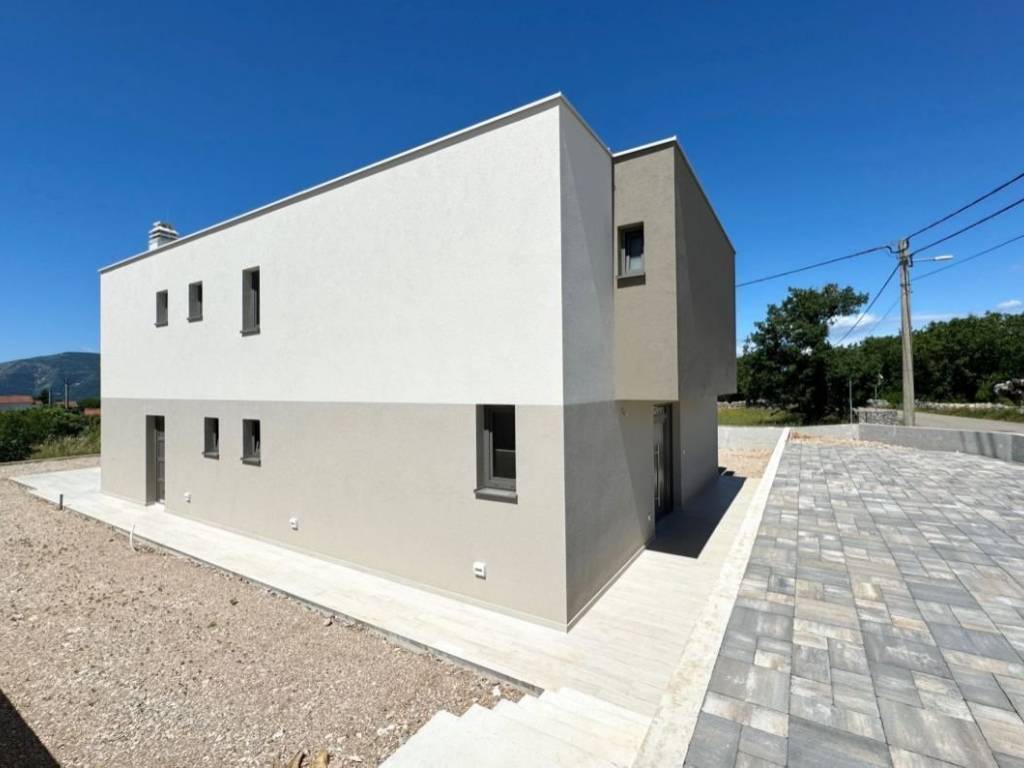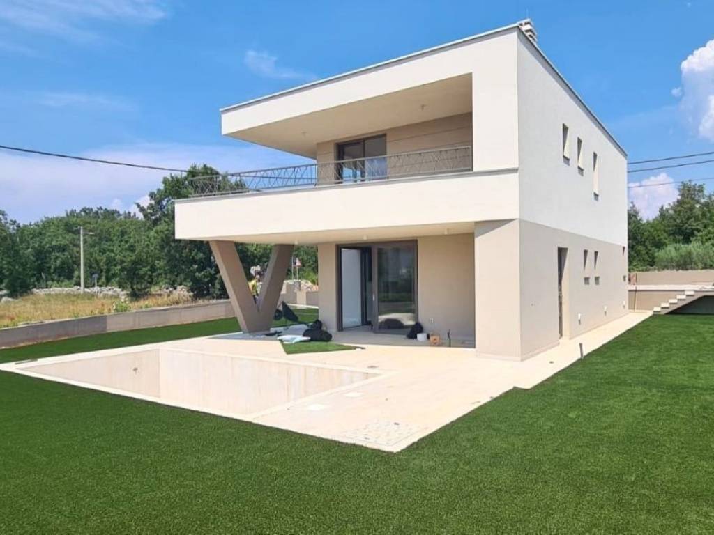 Otok Krk, grad Krk, šire područje, prodaja nove, ekskluzivne urbane vile površine 212,99 m2, s bazenom i uređenom okućnicom, na parceli površine 707 m2. Vila se sastoji od prizemlja površine 108,59 m2 s dnevnom sobom, kuhinjom, blagovaonom, hodnikom, jednom spavaćom sobom, kupaonicom, toaletom, dva spremišta, stubištem i natkrivenom terasom te prvog kata površine 104,40 m2 s tri spavaće sobe, dvije kupaonice, hodnikom, garderobom, natkrivenom i nenatkrivenom terasom. Vrhunska kvaliteta gradnje i opreme, dizajnerski namještaj, klimatizacija, kvalitetne podne obloge, podno grijanje, panoramske klizne stijene, priprema za grijanje bazena, priprema za fotonaponsku elektranu na krovu, priprema za punjenje električnih vozila, dva parkirna mjesta. Mirna lokacija, 1500 m od mora.