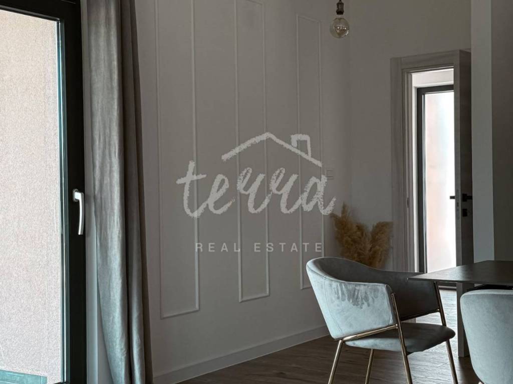 te dnevni boravak,blagavaona i kuhinja otvorenog tipa sa izlazom na terasu i bazen okružen zelenilom.