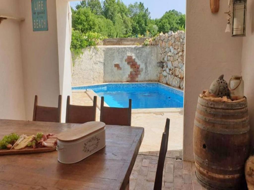 Otok Krk, Malinska, šire područje, prodaja rustikalne kamene kuće površine 249 m2, s bazenom i uređenom okućnicom. Kuća se sastoji od prizemlja s dnevnom sobom, kuhinjom, blagovaonom, prvog kata sa spavaćom sobom i kupaonicom te drugog kata sa spavaćom sobom i kupaonicom. Potpuno renovirana, dva parkirna mjesta. Mirna lokacija, 2000 m od mora.